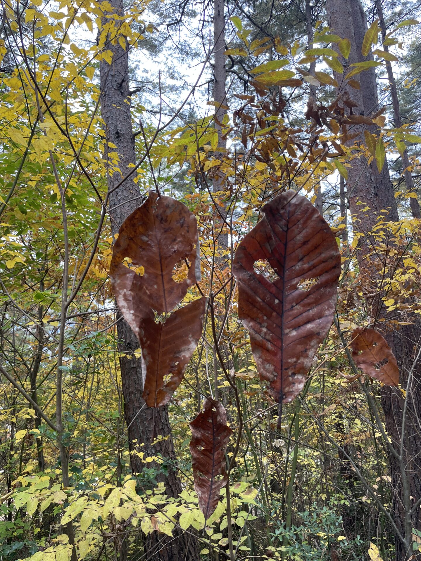 大きな葉っぱに穴をあけてオバケに変身!