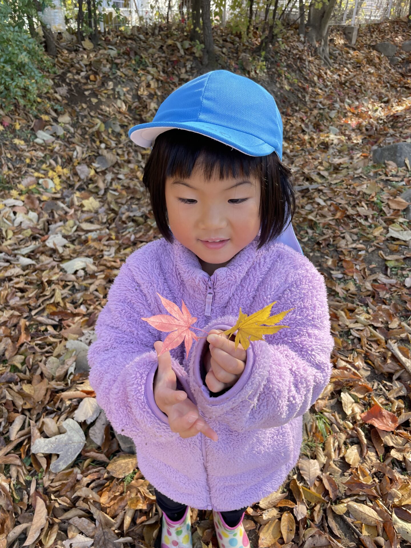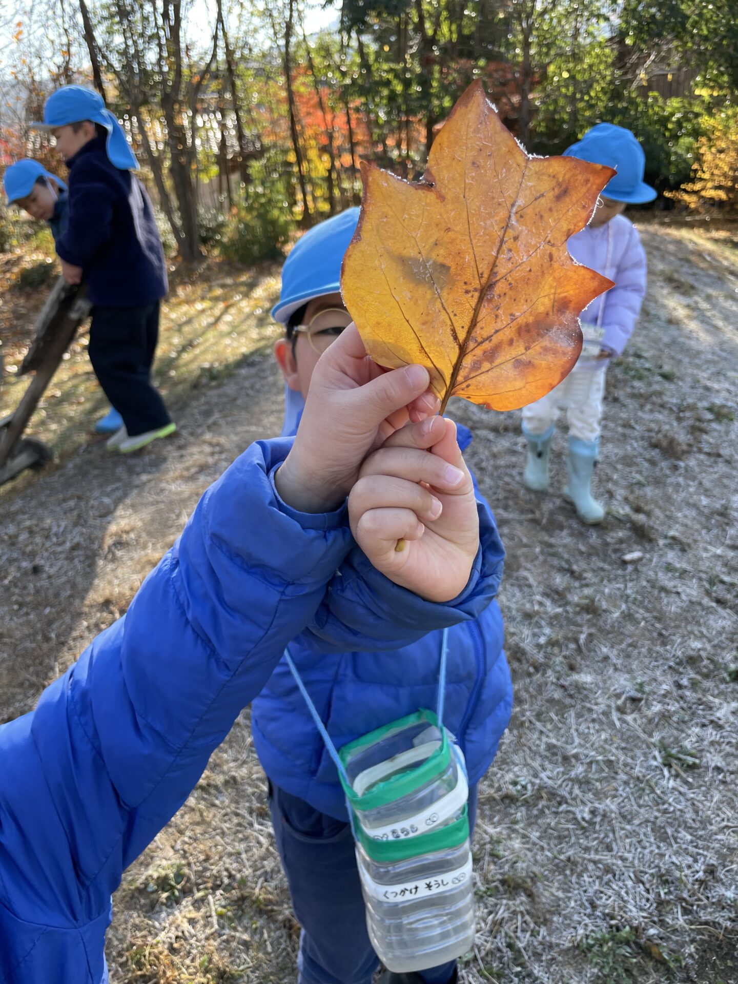 「見て~!葉っぱに氷がついてる!」と冬の始まりを感じていました。