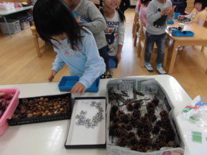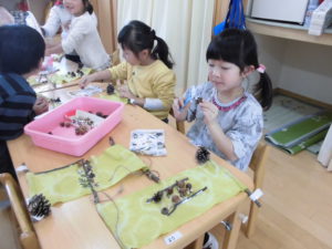 【年長さん】木の実のタペストリーづくり・まつぼっくりツリーづくり