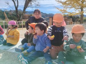 美味しい焼き芋をたっぷり食べて、心もお腹もほっこりな子どもたちです