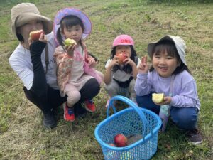地元にいながら、意外にもリンゴ収穫の機会が少ない志賀高原保育園のお友達。