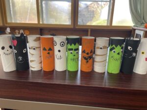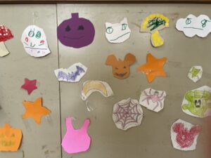 製作でハロウィンの飾りをたくさん作ってお部屋に飾りました。