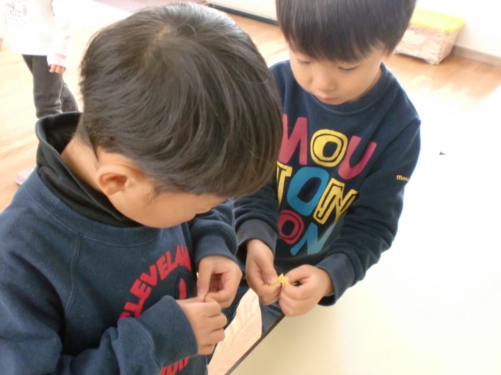 子ども達の思いや考えを大切にし、一人ひとりが表現したり、作り出したりすることの楽しさや充実感を持ちながら最後までやり遂げられるようにしていきたいと思います。