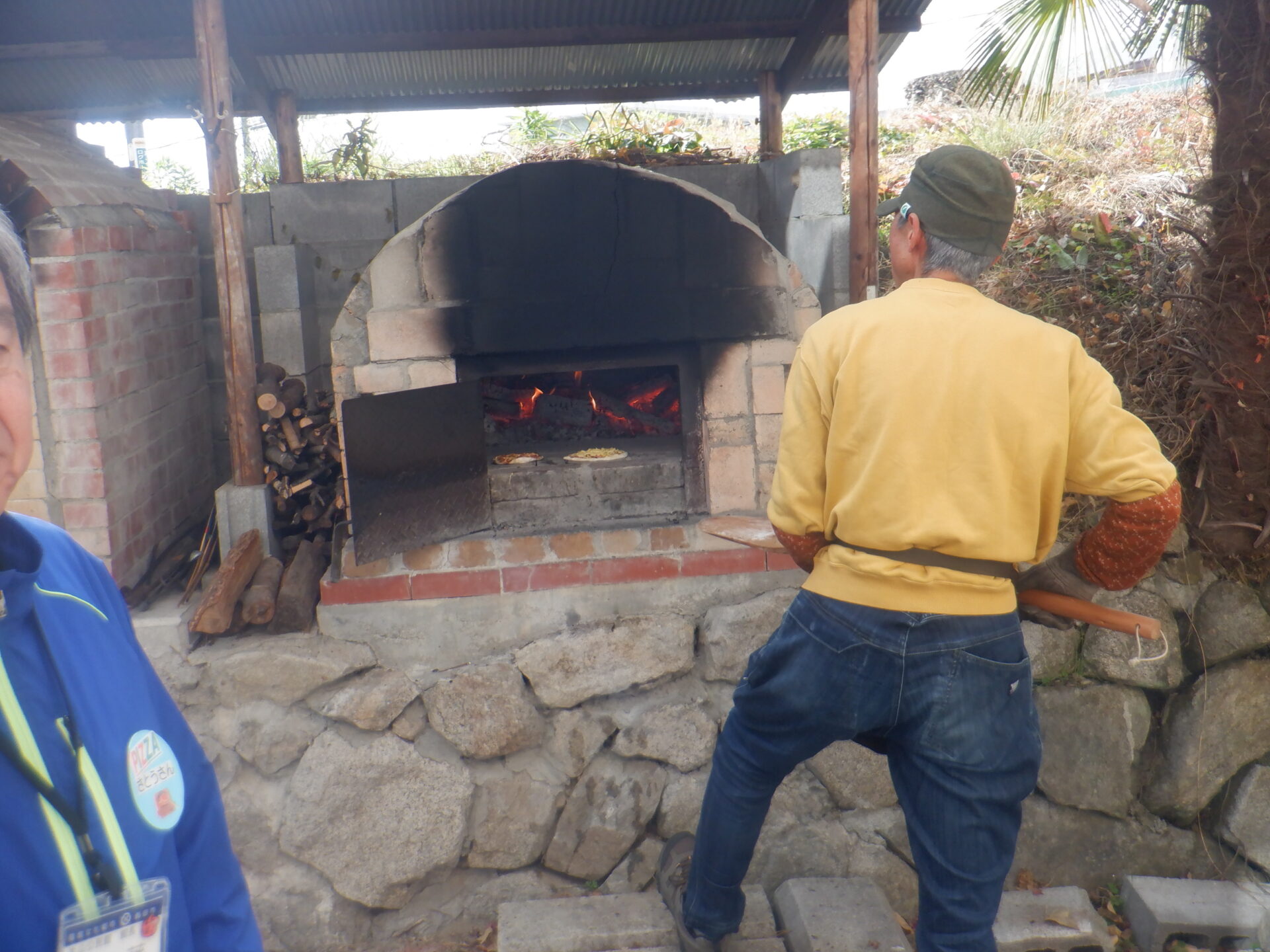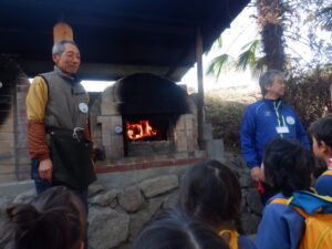 公民館では石窯部の皆さんが窯に火を入れて待っていてくださいました。
