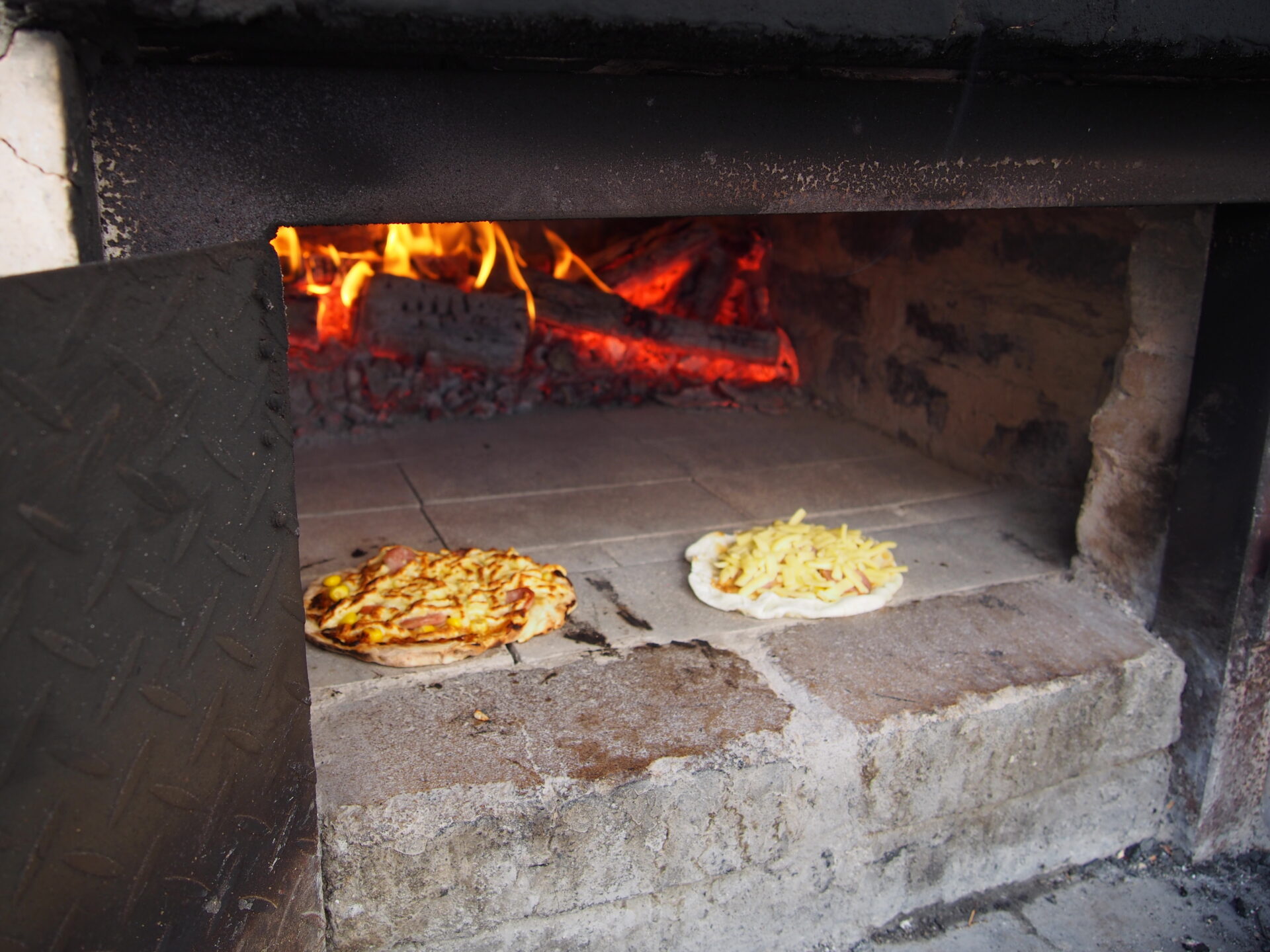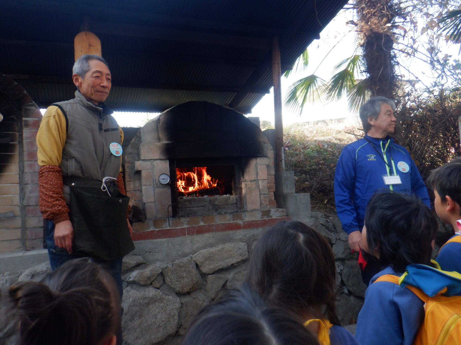 ピザを焼くには窯の温度をどんどん上げなくてはならないそうで、こども達が到着したときにはもう400℃を超えていました。