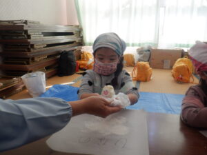 ・こねていたら、菅沼さんの手に付かなくなったね。