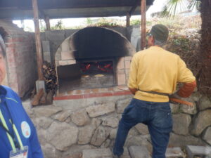 出来上がると落とさないように石窯のところまで運びます。