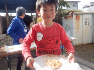 協力してくださった、公民館の館長さん、主事さん、石窯部の皆さん、菅沼栄養士さん、味噌作りを指導してくださった松岡屋醸造さん、トッピングのウインナーを下さった岡本養豚さんなど多くの皆さんのおかげで、ピザ作り体験ができ、感謝したいと思います。こども達にとってはとてもうれしい一日となりました。