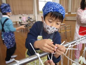 前日から紐を玉結びにする練習も行い、準備はばっちりです。