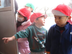 「先生、とらさん(年長)なにかしてるよ。」と小さいお友だちも見に来て、興味津々です。