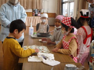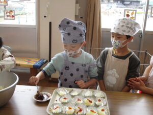 ・クッキングも3回目になり、こども達も包丁の使い方に慣れてきて、クッキングを楽しみにしている。安全に気を配りながらも積み重ねていくことは大事だと思った。
