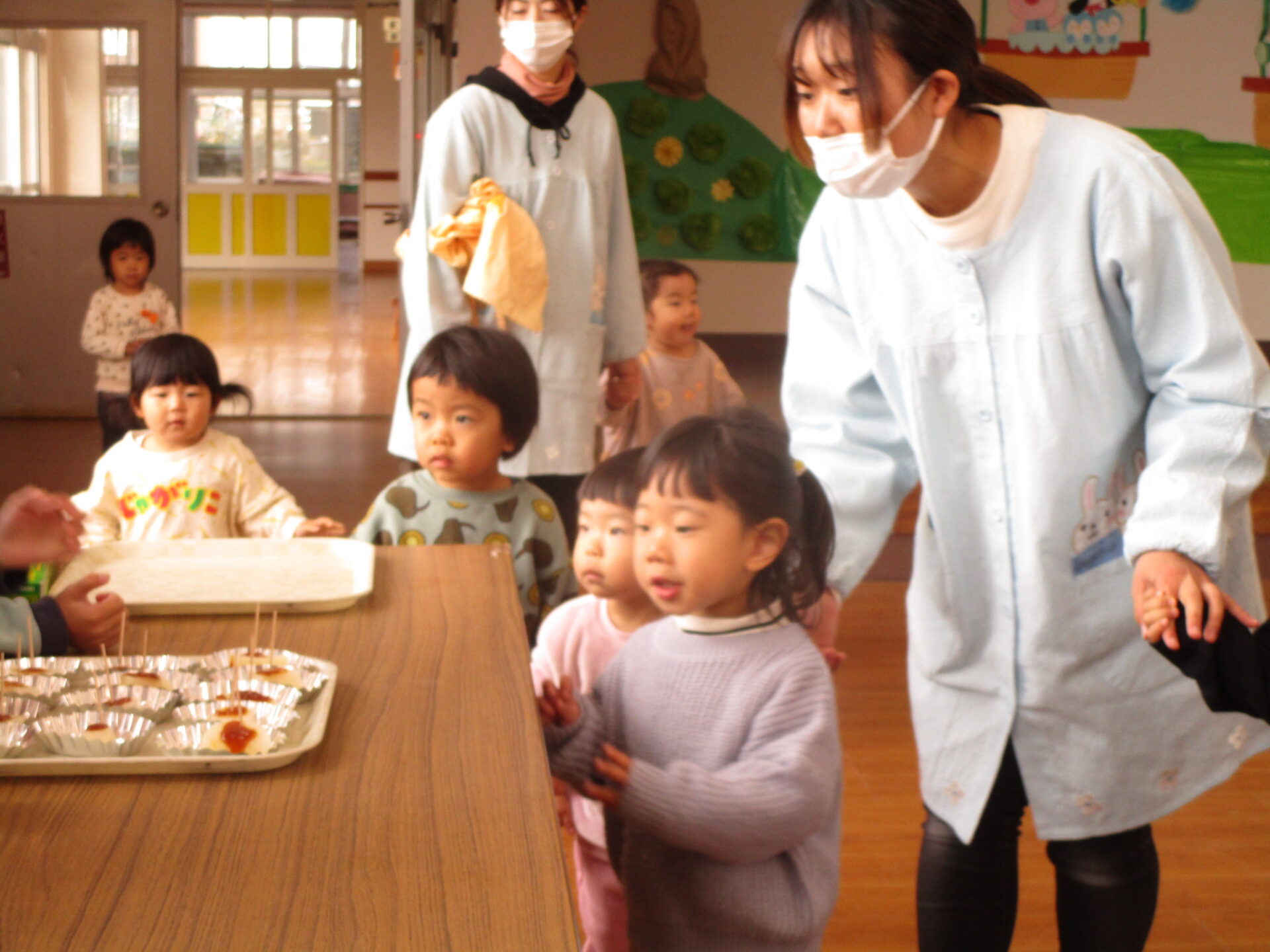 未満児さんもにおいに誘われて出てきてくれました。