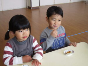 「こんなおいしいもの食べたことない‼」というお友だちもいたり、食べ終わっても名残惜しそうに、味噌をなめている年少さんもいましたよ。