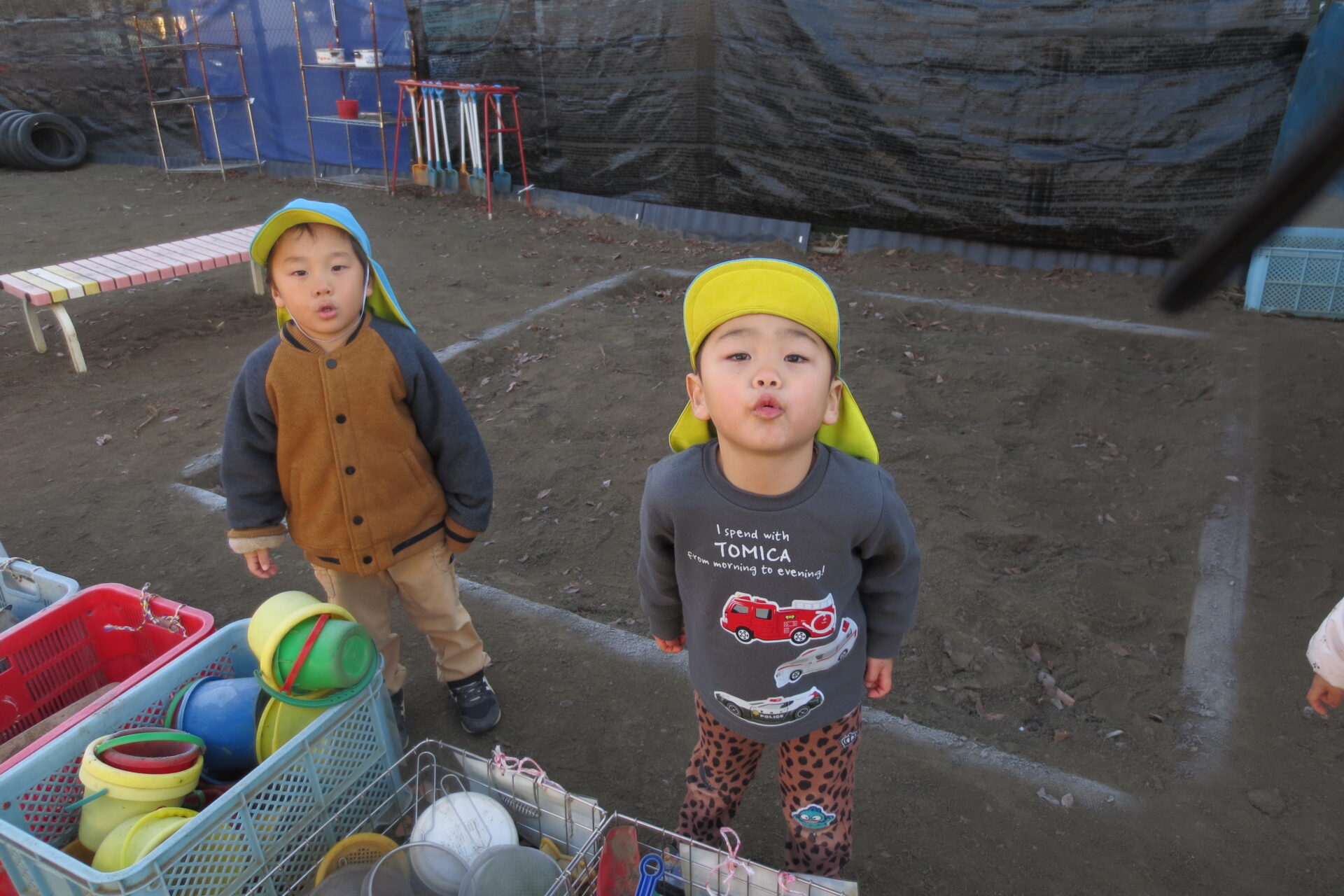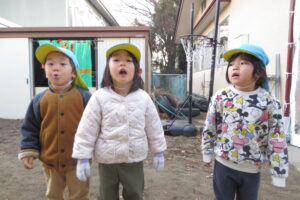 気温の下がった朝、保育士が園庭で口から湯気を出してみると・・・
