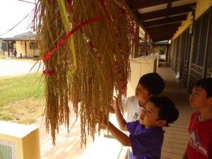 精米したお米を食べることを楽しみにしていた子どもたち。
