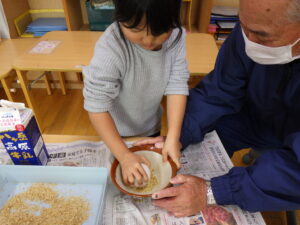 参観日には保護者の方と一緒にもみすりをやってみました。