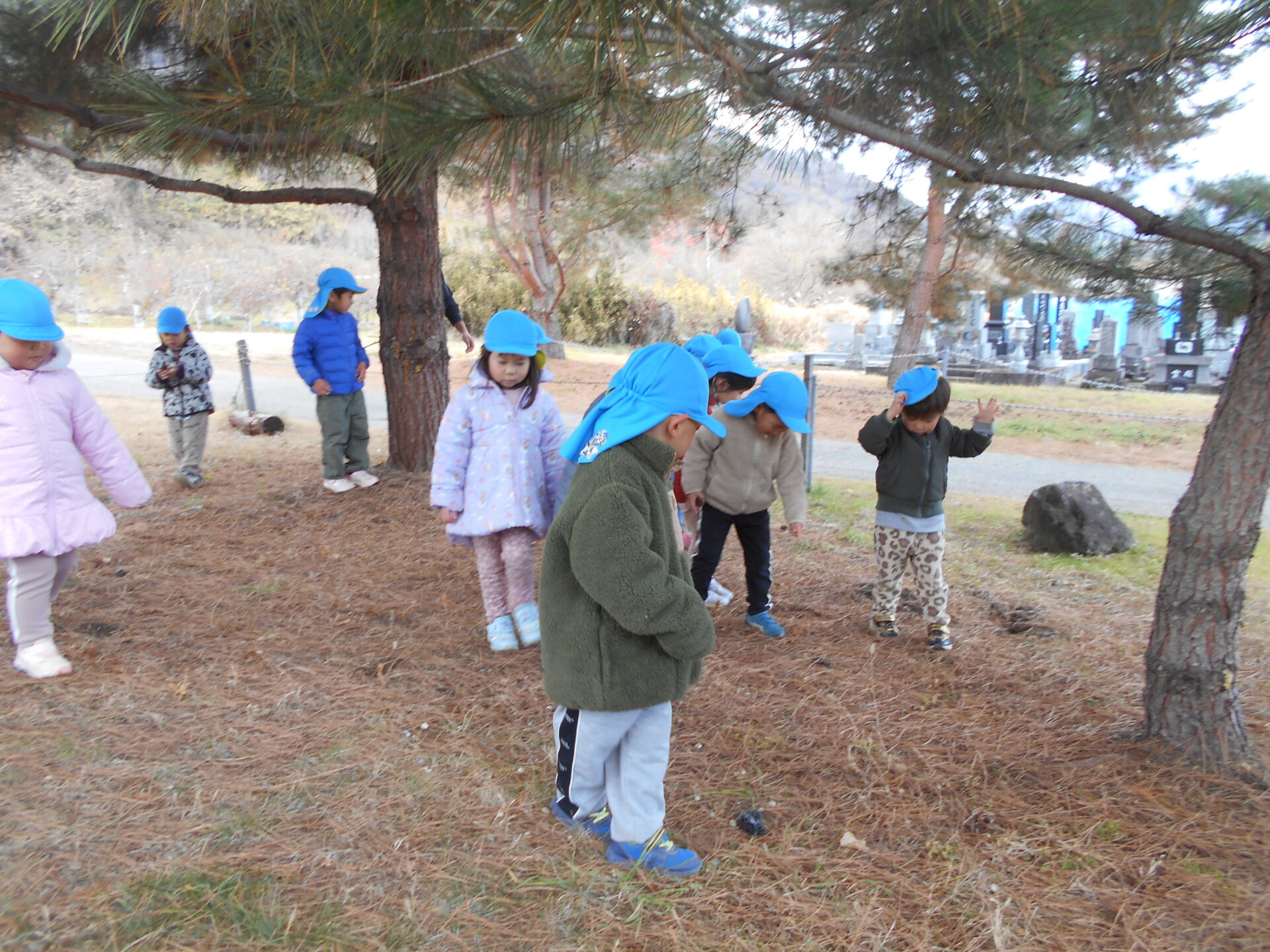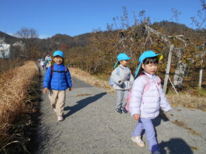 クリスマスの飾りに付ける自然物をみんなで探しに出かけました。