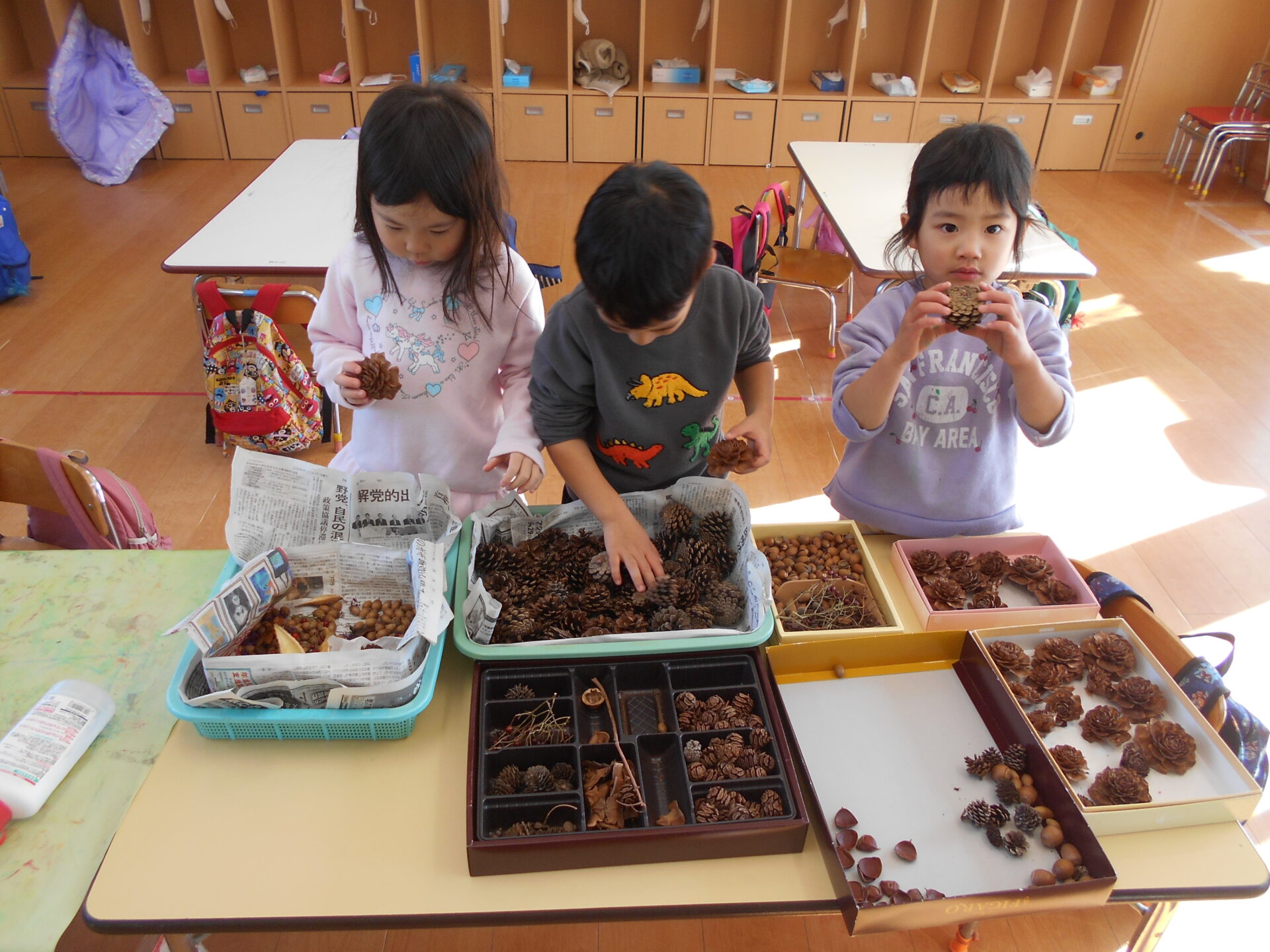 同じ松ぼっくりだけど、大きさも色も違うね!!