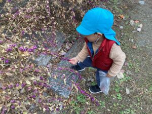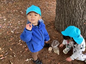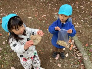 いろいろな実や花など自然物見て触れて、それが何なのかワクワクが止まらない子ども達でした。