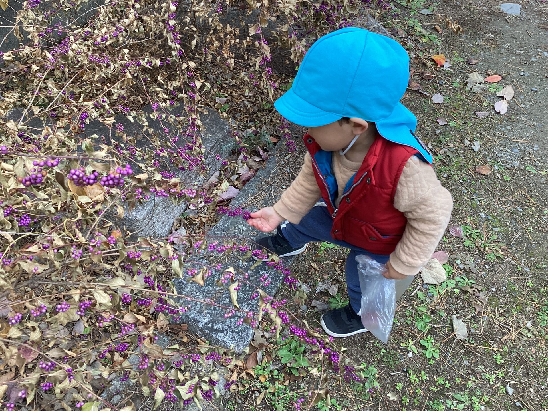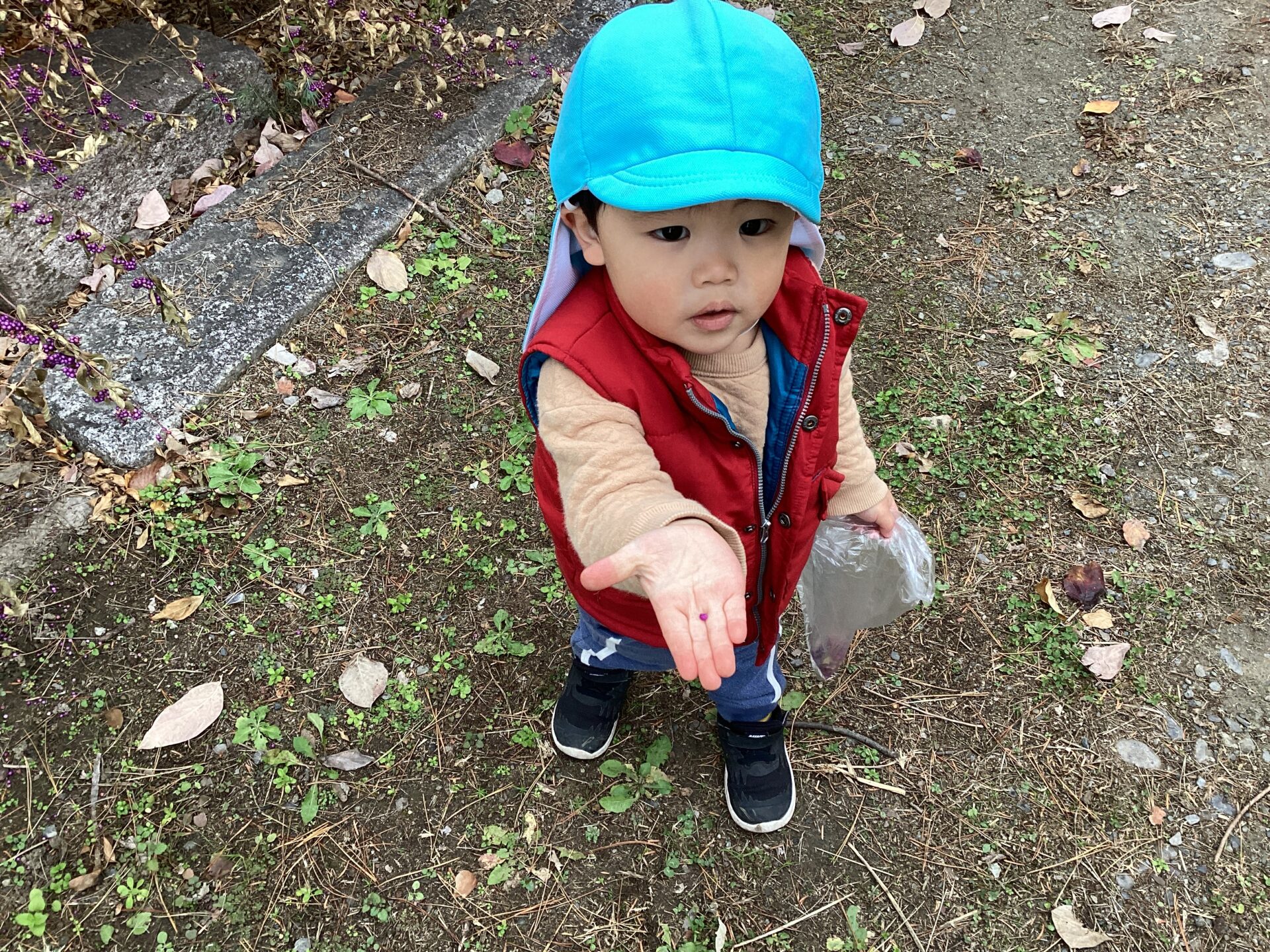 「見て!赤いの落ちてる。」