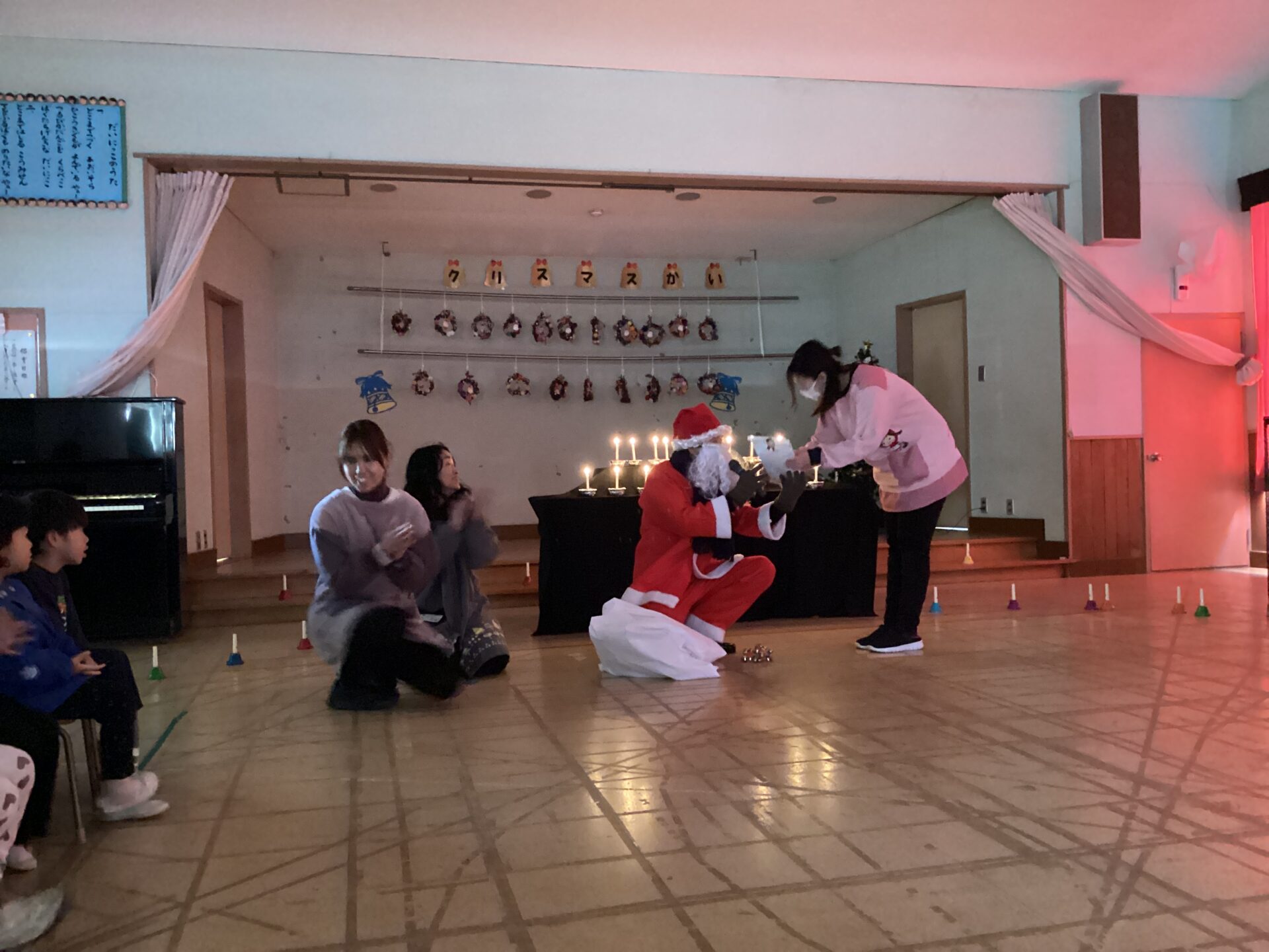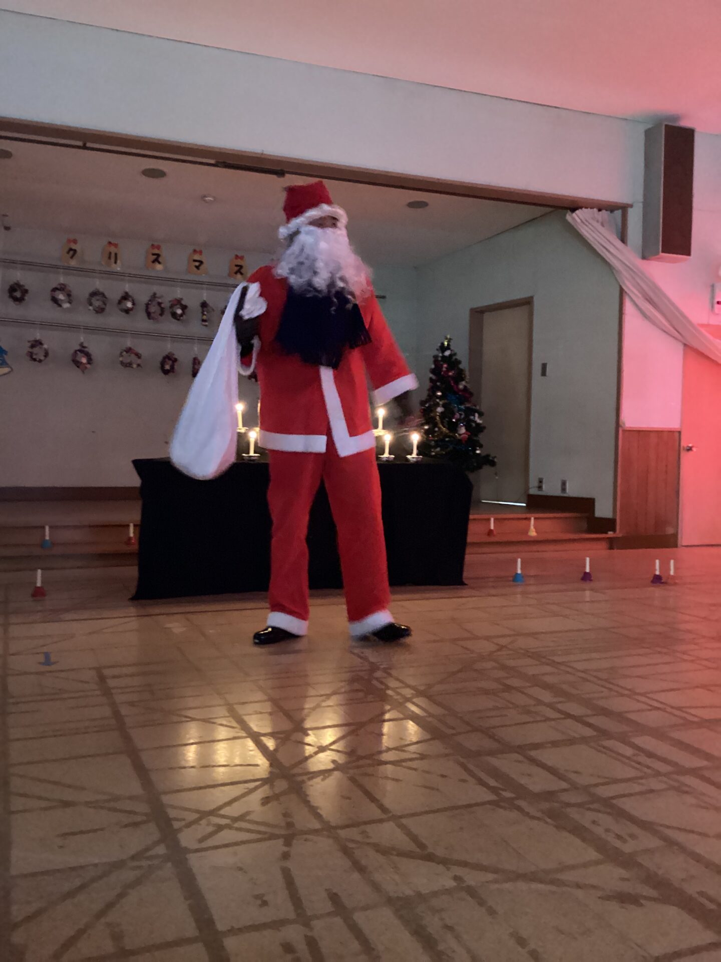 みんなで「あわてんぼうのサンタクロース」を歌っていると、、、鈴の音が、、、