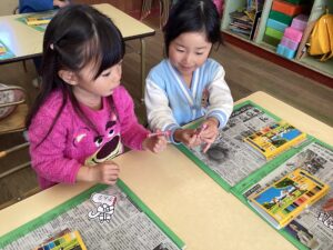 ・自分達で拾った自然物を使用することで製作をより楽しめていました。。