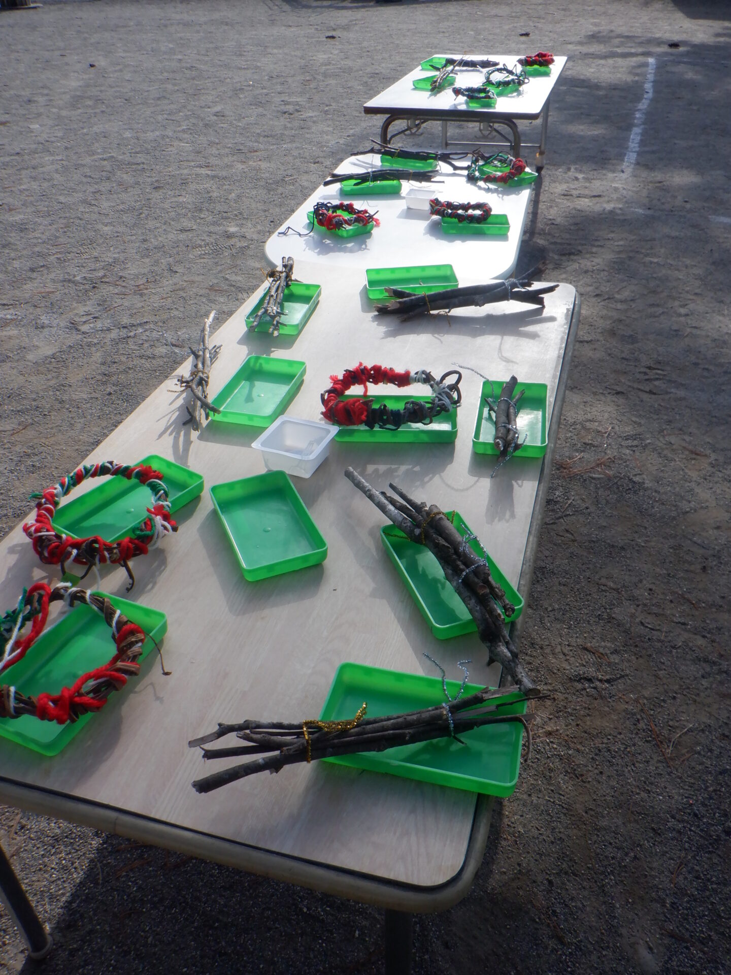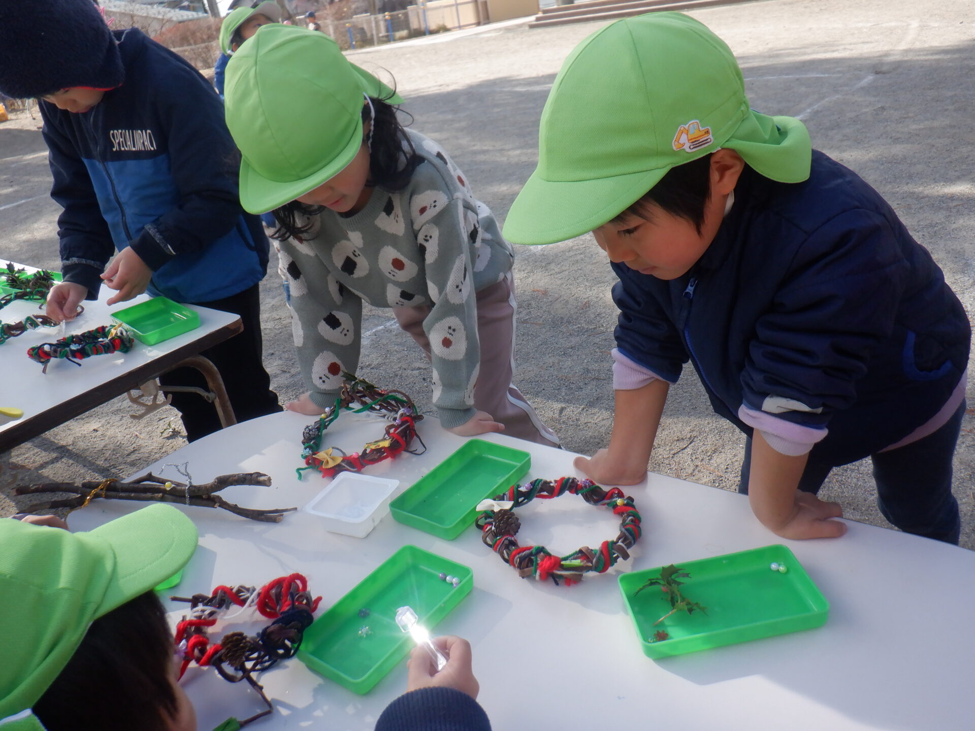上川手の山や畑から採ってきた自然物でクリスマス飾りを作りました。