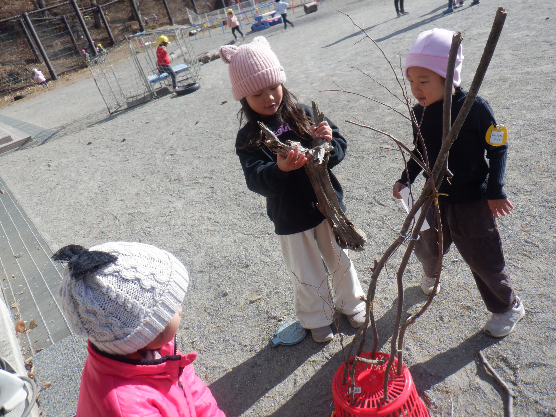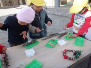 「この木の枝はどうかな?」「ここに挿してみよう!」