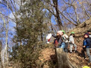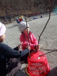 みんなが大好きな山を通して、クリスマスを楽しんだ子ども達。山に行くたびにワクワクが広がっていく姿が印象的でした。「今日は何かあるかな?」と山を登ったり下りたりしながら山の探索活動をする中で、自然と体が育っているように感じます。