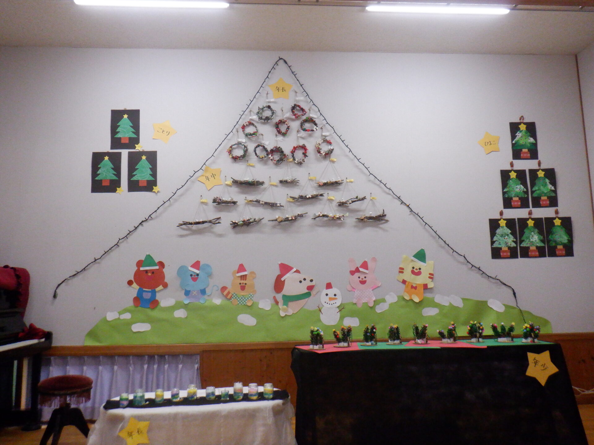 おじいちゃん先生がもみの木を足してくれてツリーが完成!!