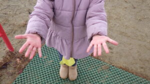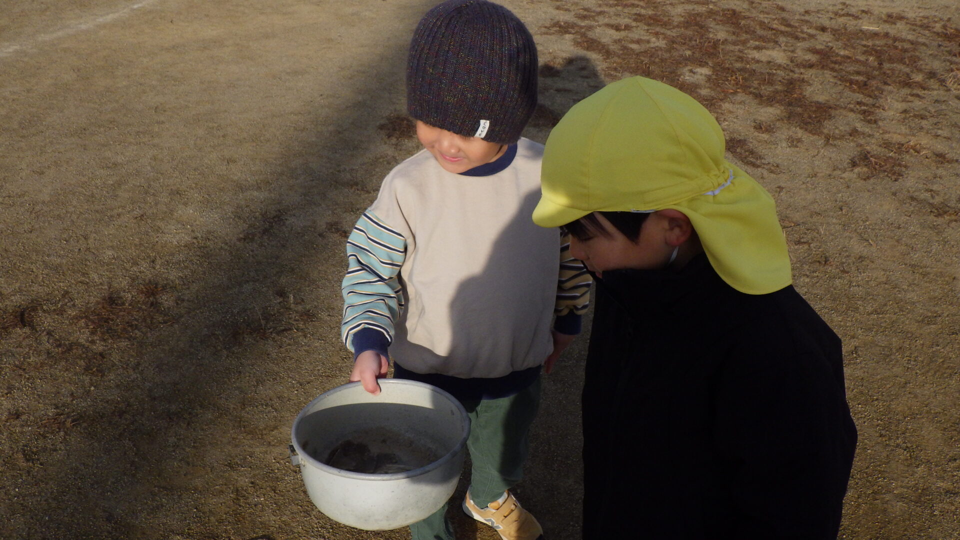 12月になり、園庭に起きた変化にすばやく気づく子どもたち。