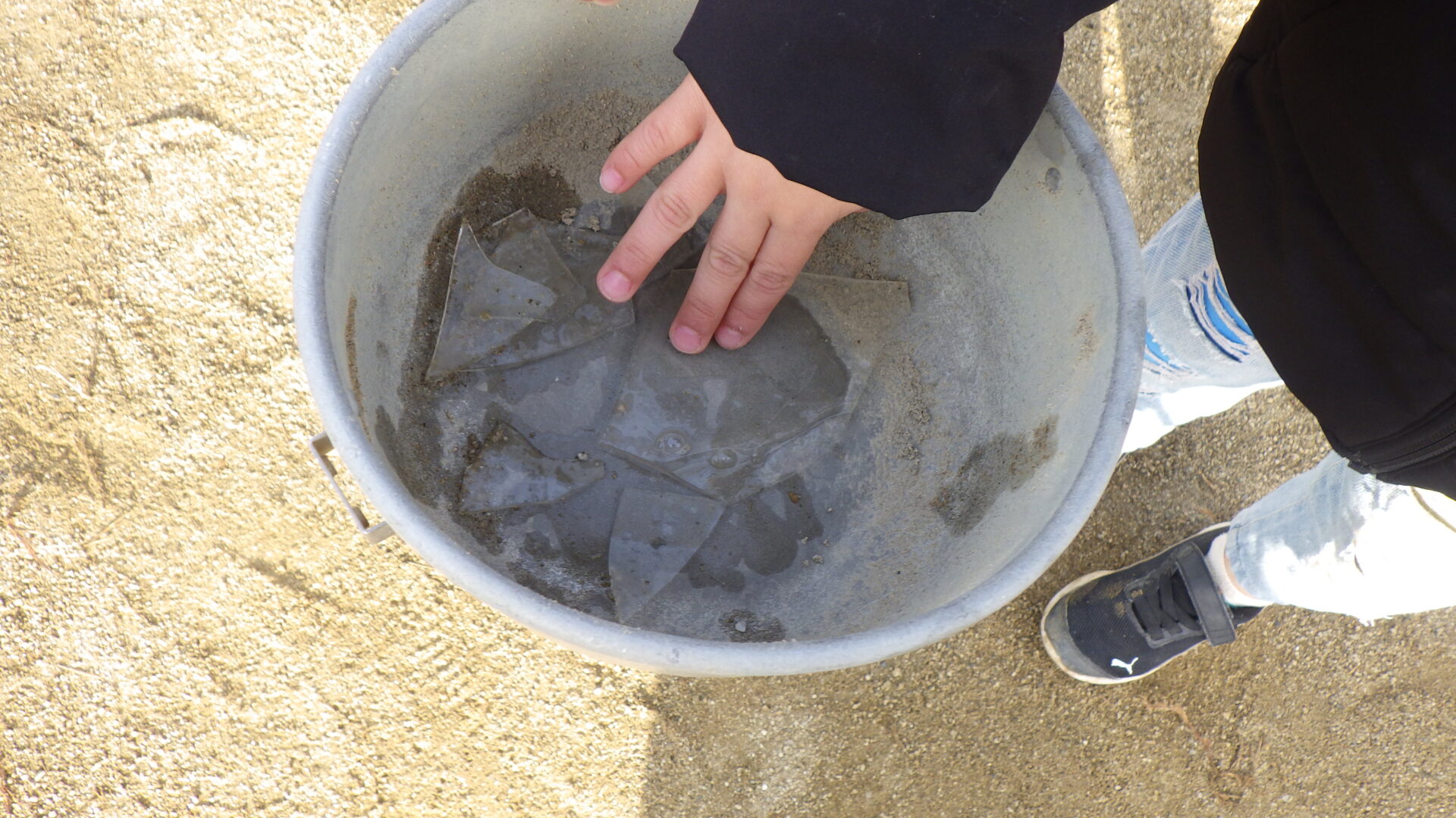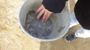 「カップに入れたら凍るかな・・?」と子どもたち。