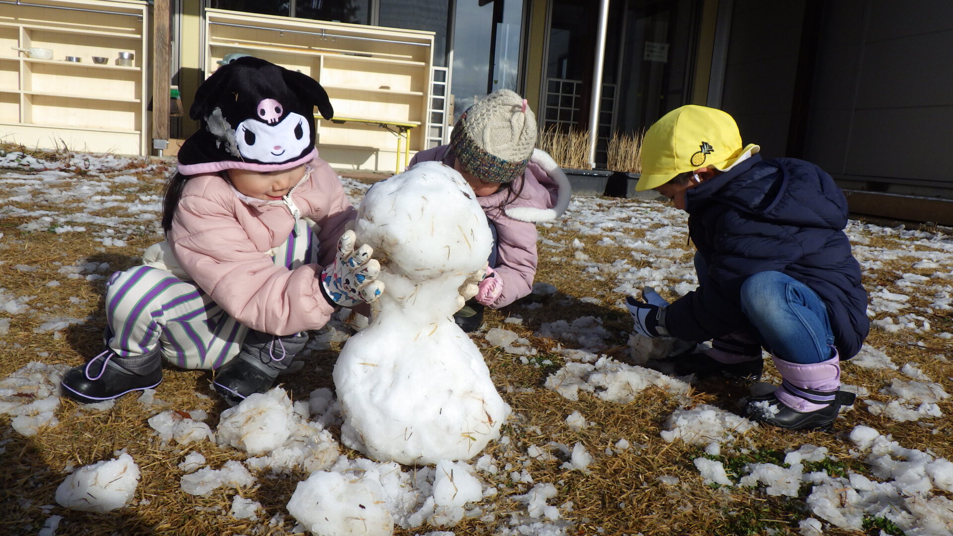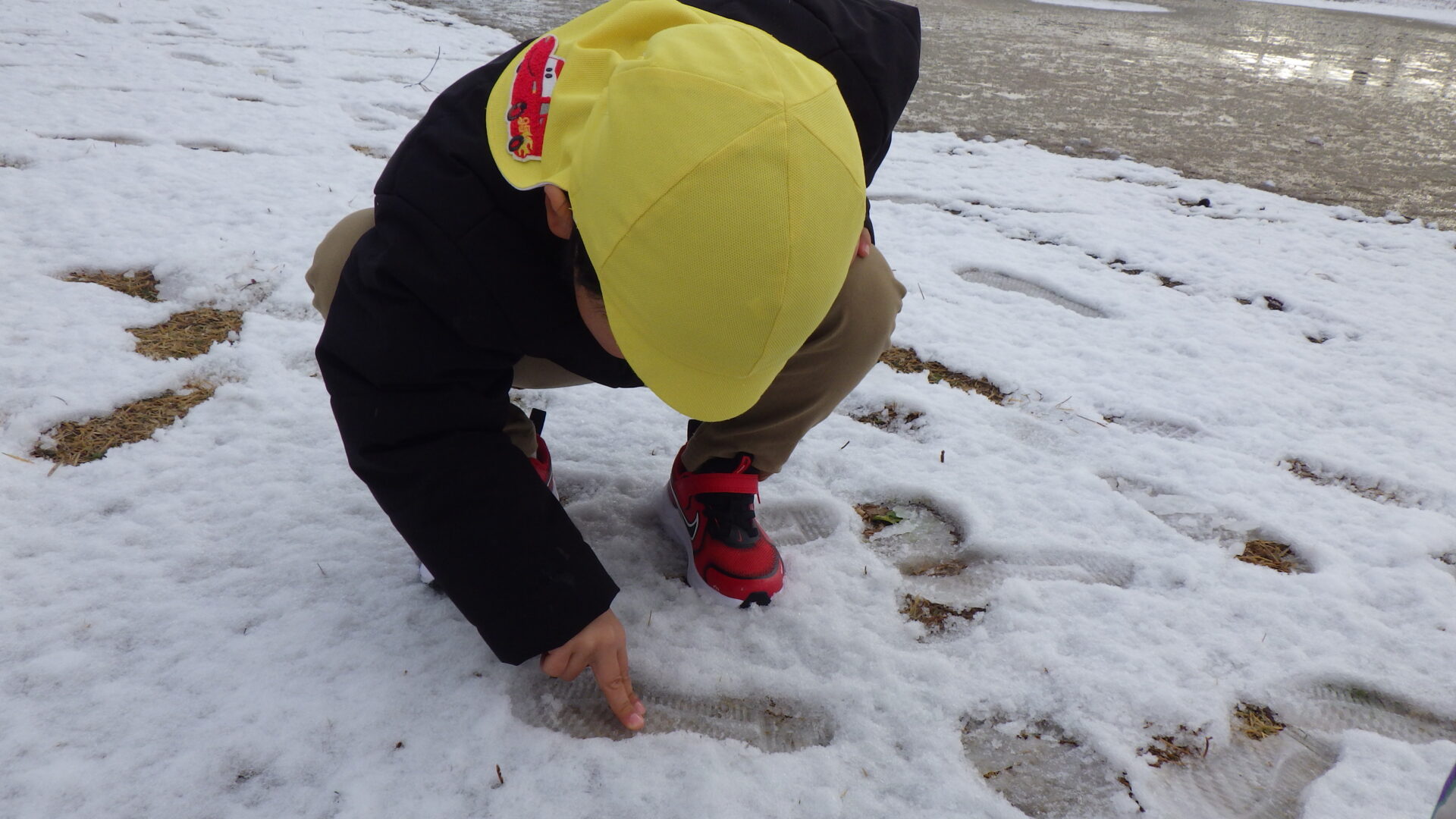 また、雪が積もった日が2日程ありましたが、雪の感触に気づきながらあそぶ姿があり、