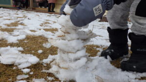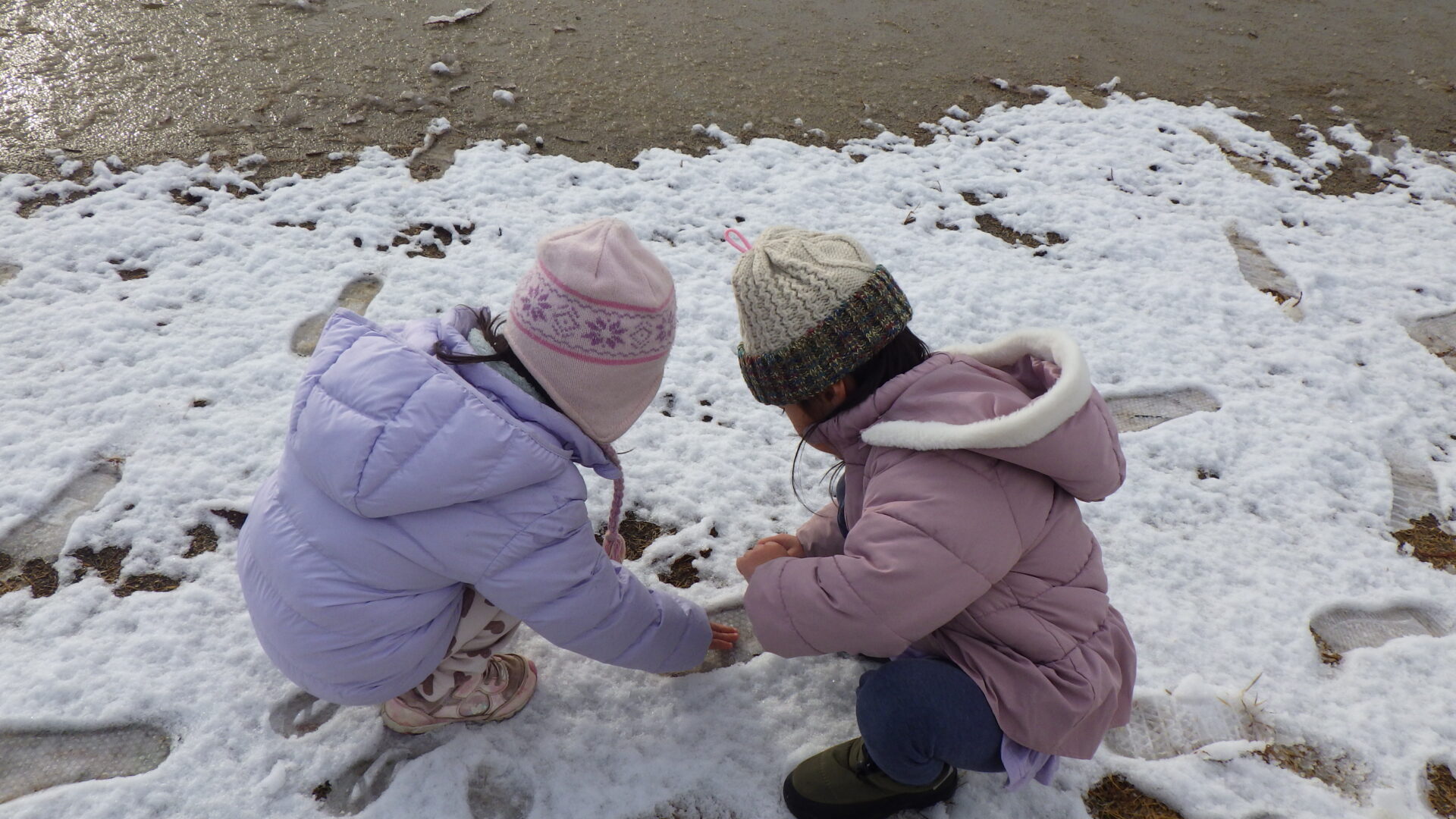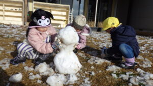 「今日の雪はなんかやわらかいね」「なかなか雪玉がつくれないんだよ」
