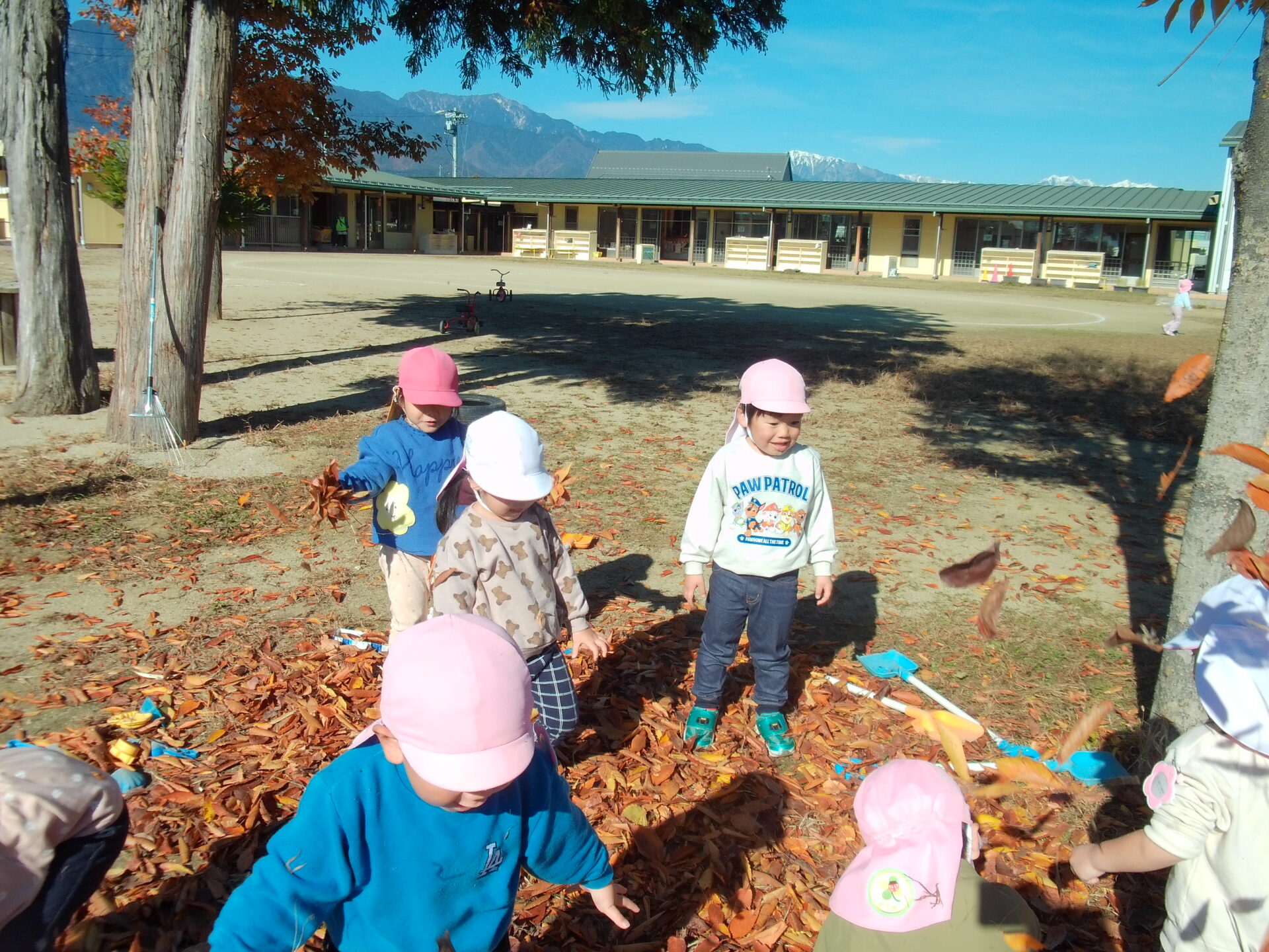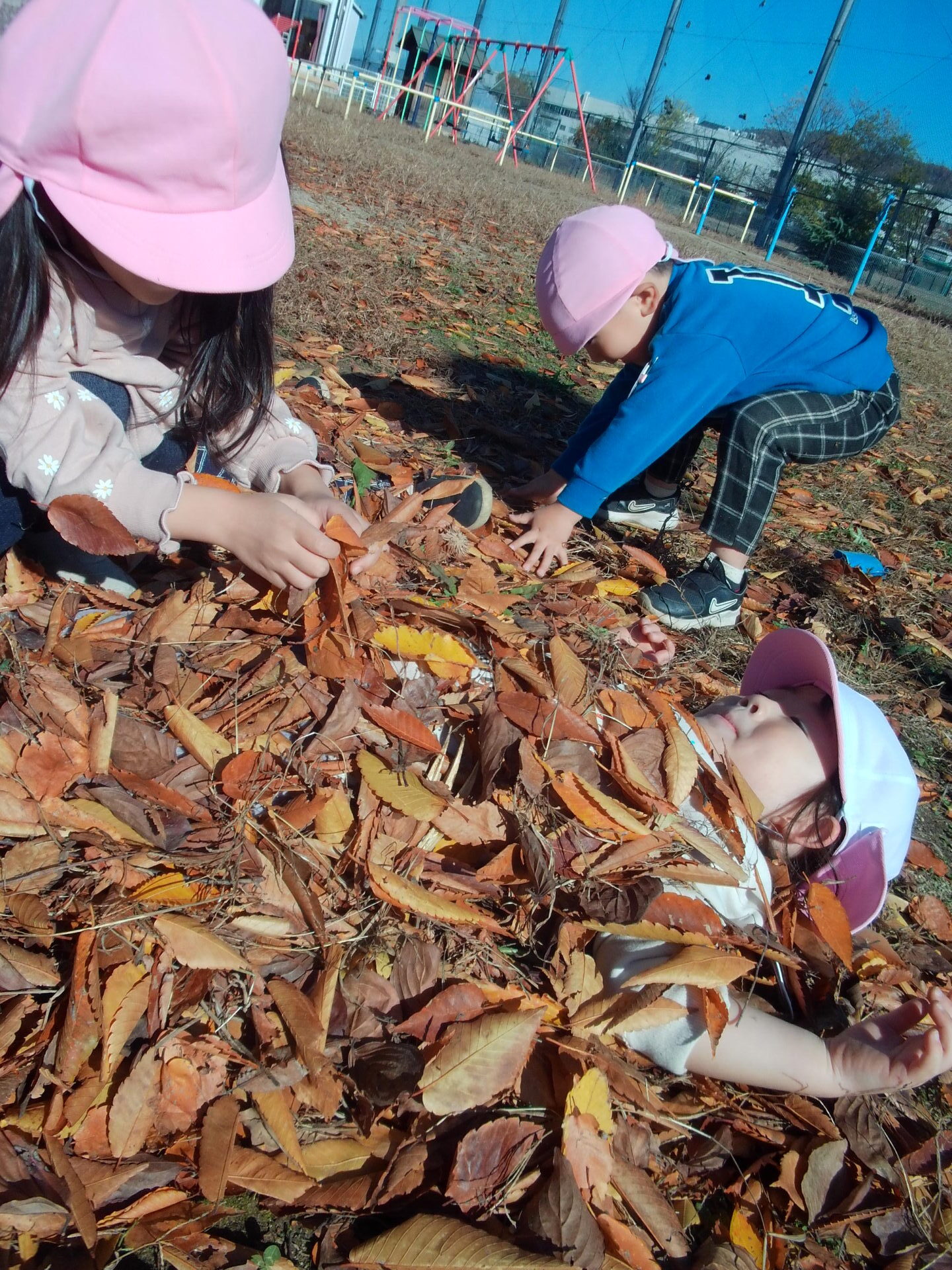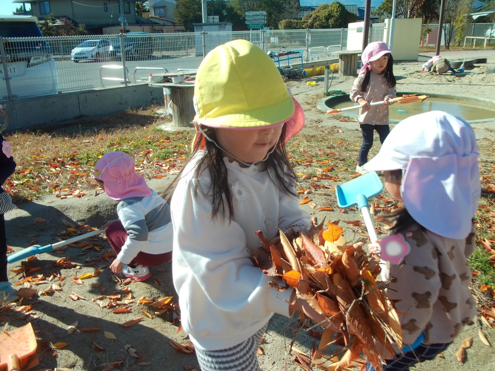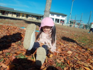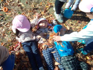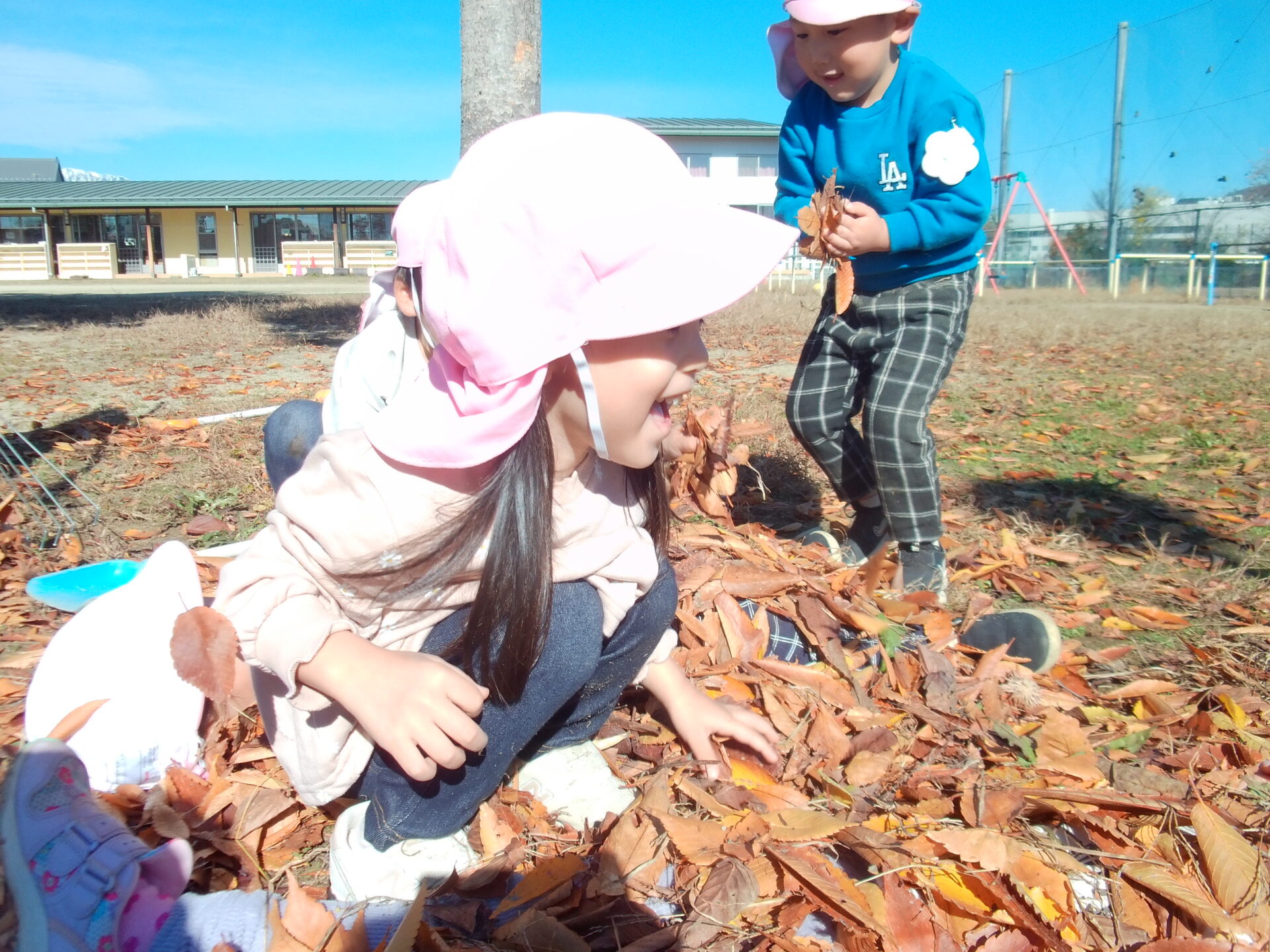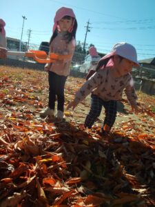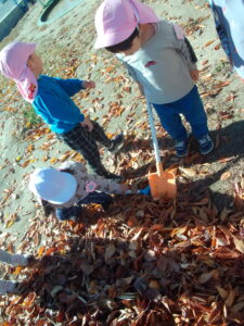 興味をもった子どもたちが、早速、落ち葉を集め始めました。