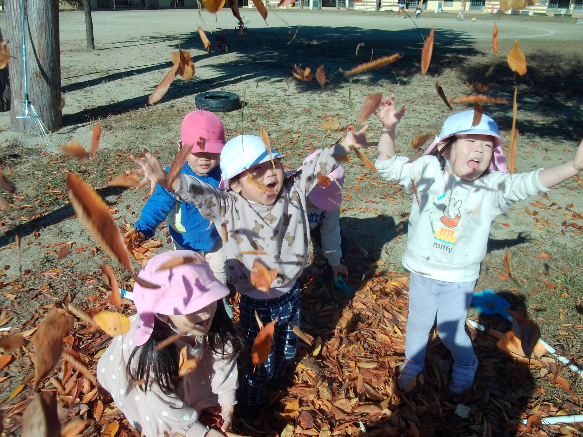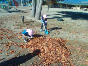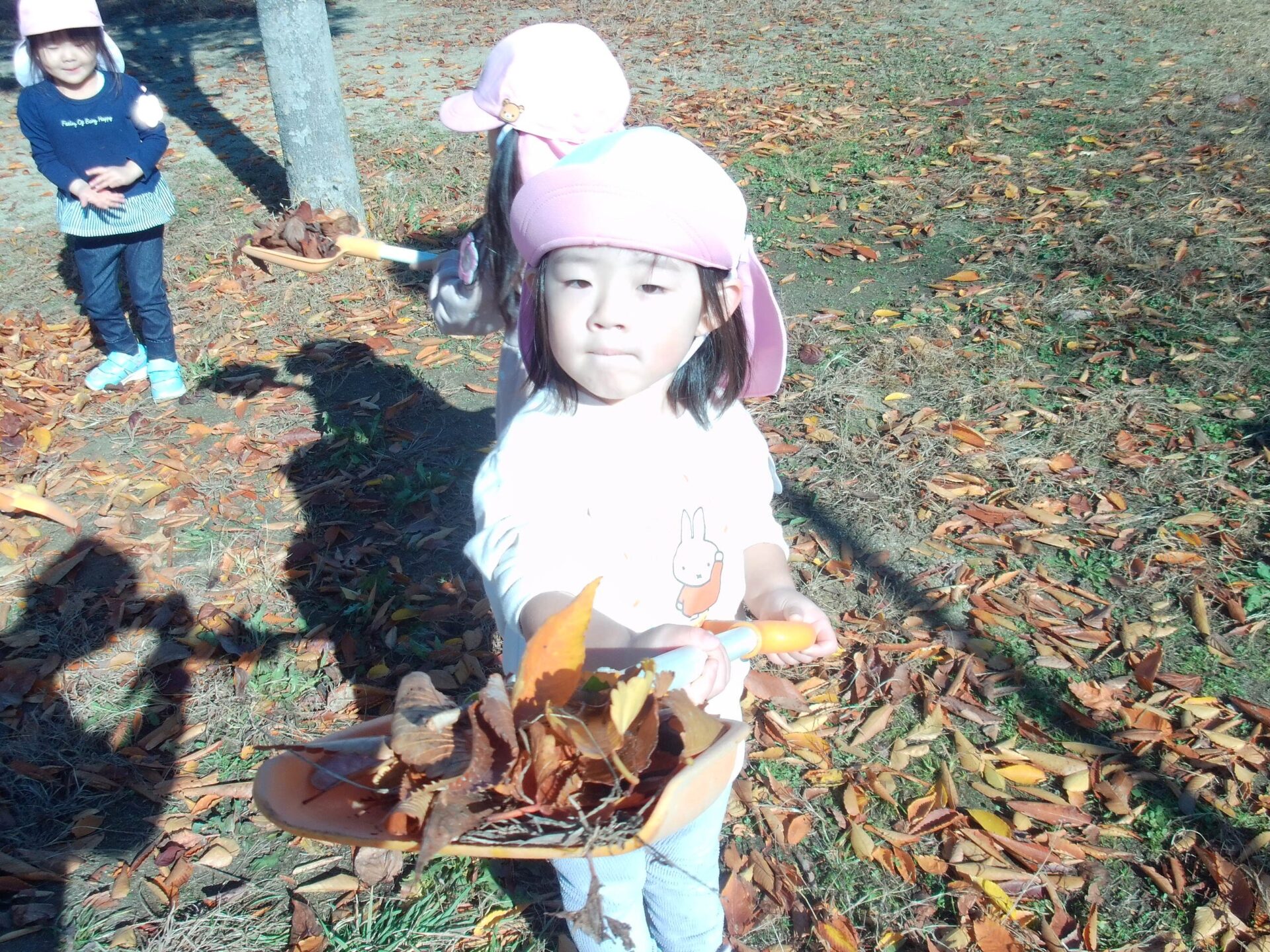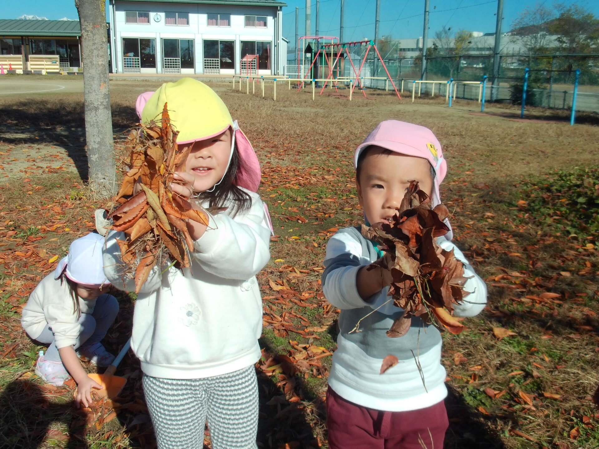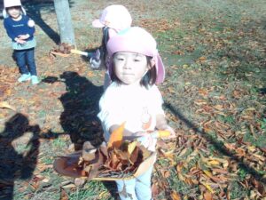 興味をもった子どもたちが、早速、落ち葉を集め始めました。