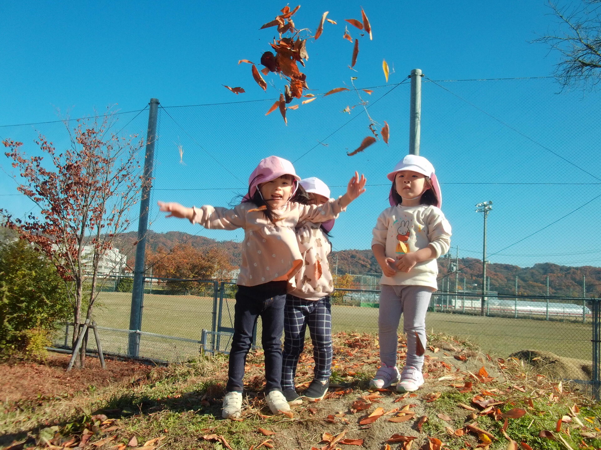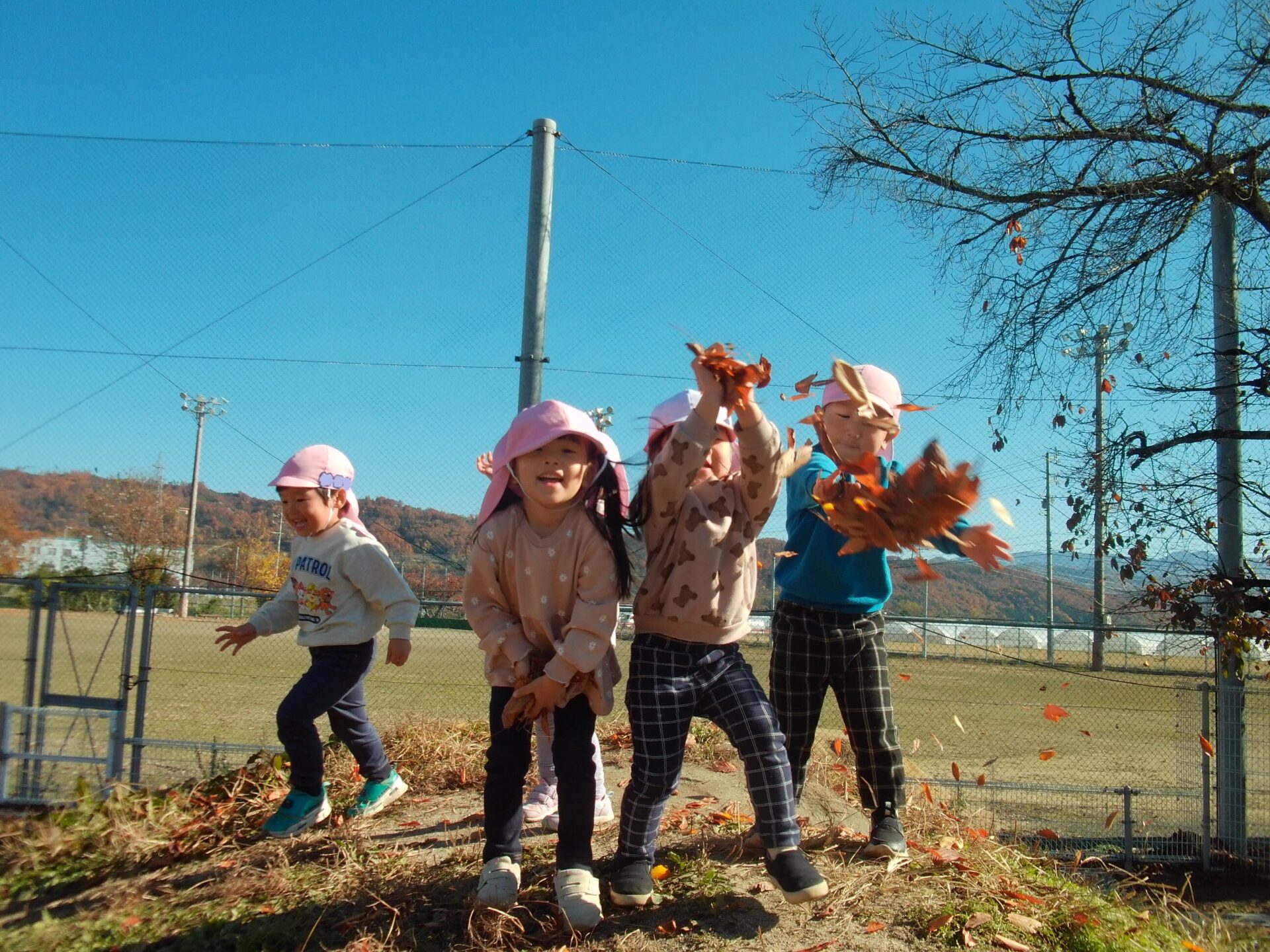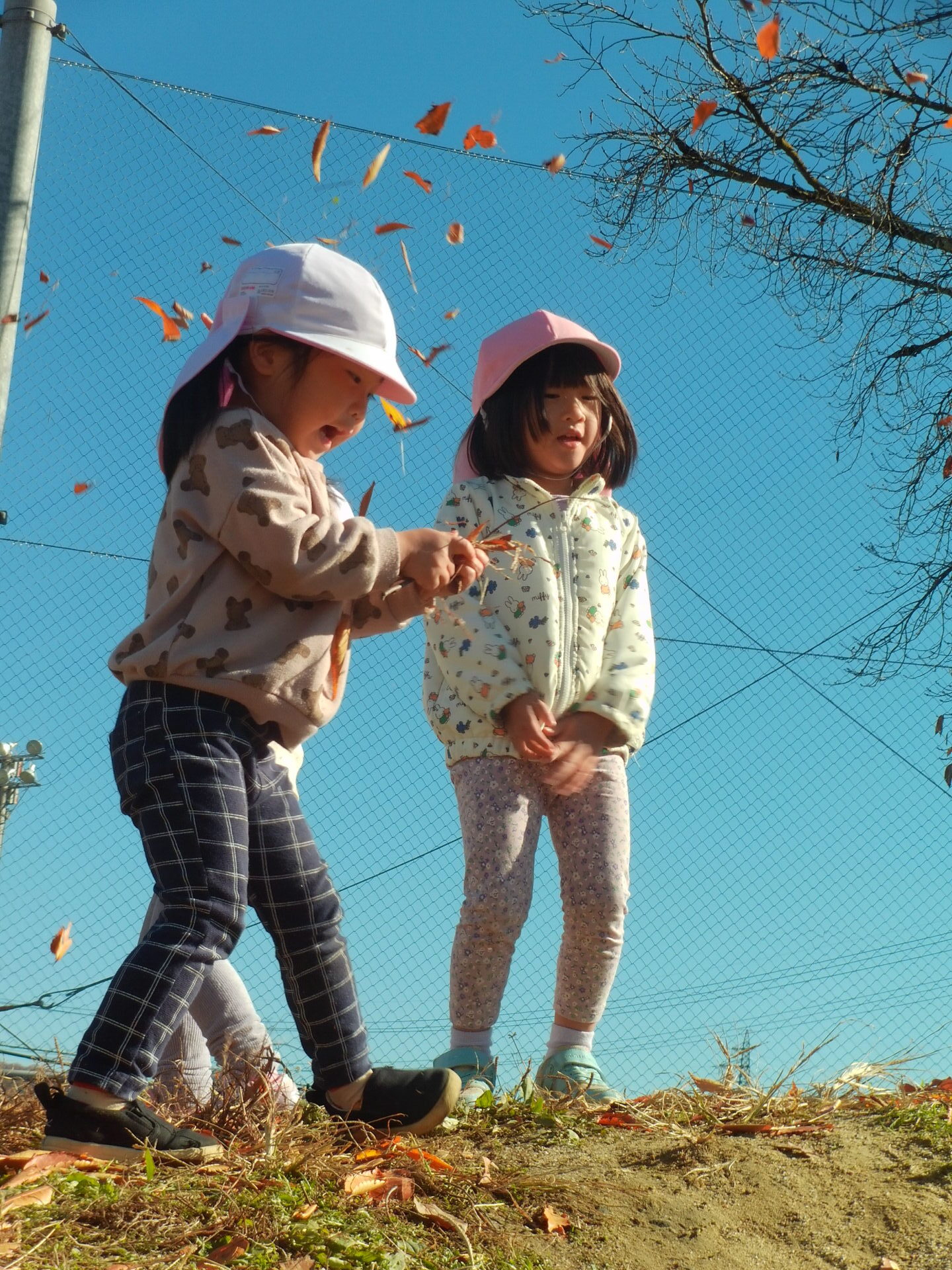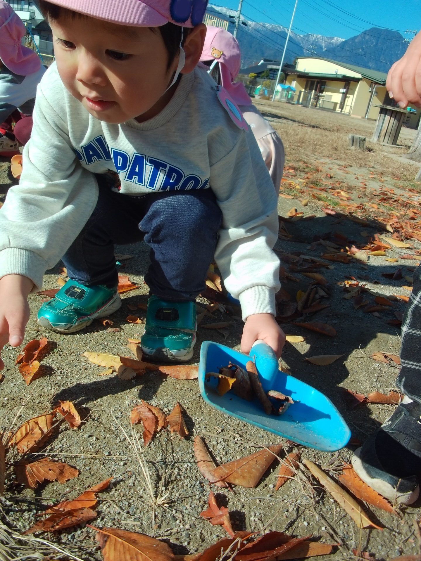 興味をもった子どもたちが、早速、落ち葉を集め始めました。