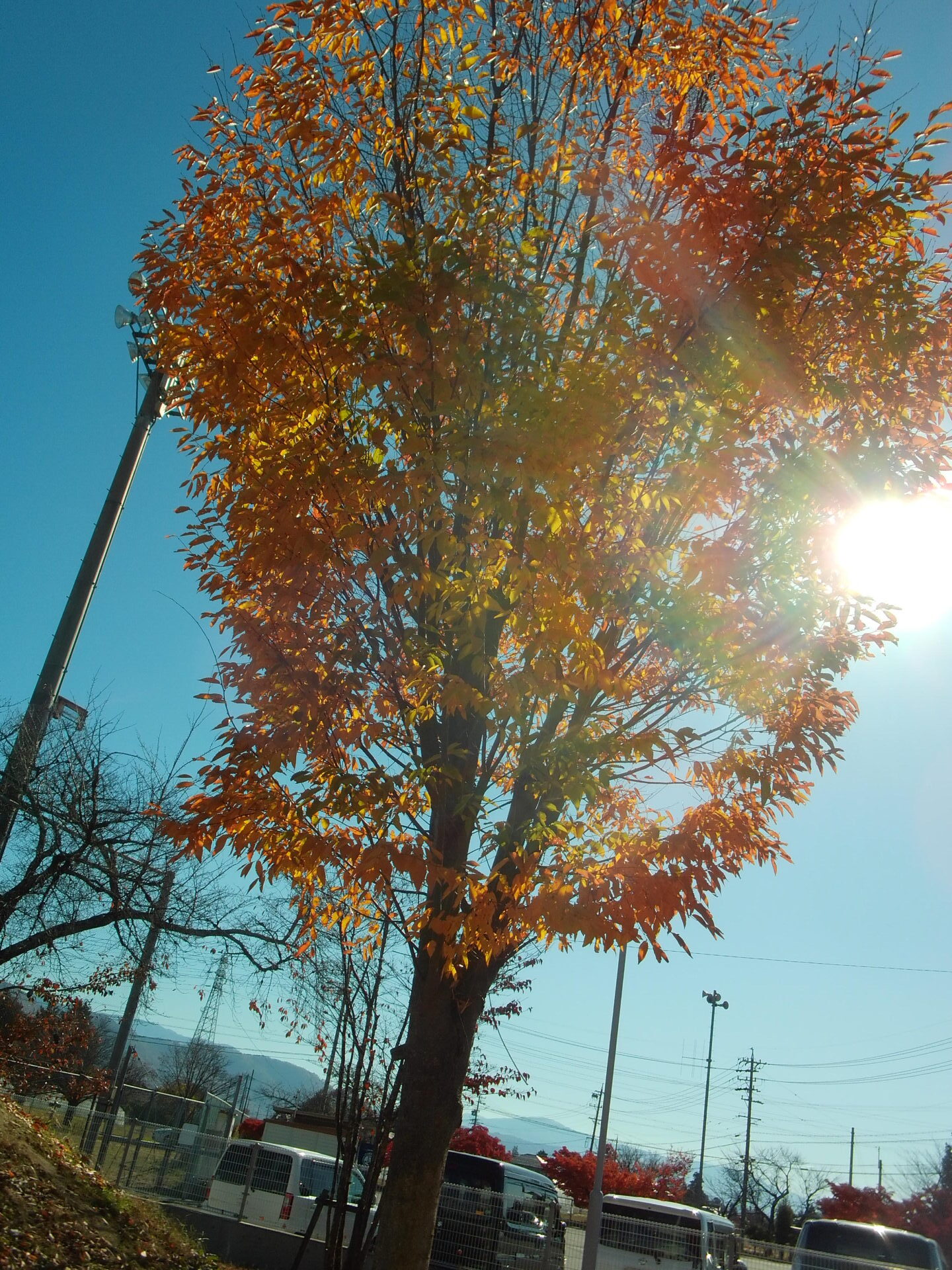 園庭の木々が色づき、前日の風でたくさん落葉しました。