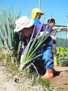以前もビーツとルッコラの収穫体験をさせていただいている関さんから、ねぎの収穫に来ないかとお誘いをいただきました。