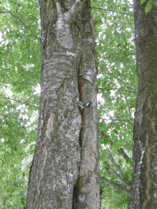 庭で遊んでいると鳥の声が聞こえてきました。近くの木の穴から鳥が顔をのぞかせていました。鳥を驚かせないように近くにいた子ども達は『しずかにね~』と話しながら友達に見に来るように声をかけていました。ほのぼのとする光景でした。