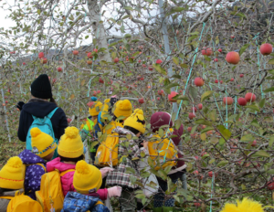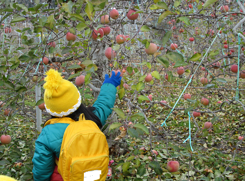 自分たちで探して選び直接もぎ取ったりんごをカバンに入れて大事に持ち帰りました。自分で取ったりんごはお店のよりおいしかったことでしょうね。次に家族で食べたと嬉しそうに伝えてくれました。