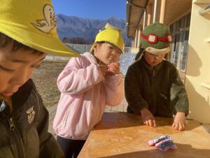 「また明日遊ぶからとっておく」と残しておいた氷はあっという間に溶けてしまいましたが、「また凍ったら遊べるもんね☺️」と期待を持てる姿に年中さんらしさも感じられました。