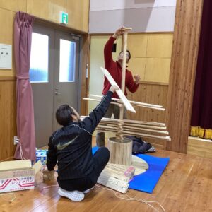 子ども達がサシェを作っている間、園長先生や幸山さんがインディゴツリーを組み立ててくれました。