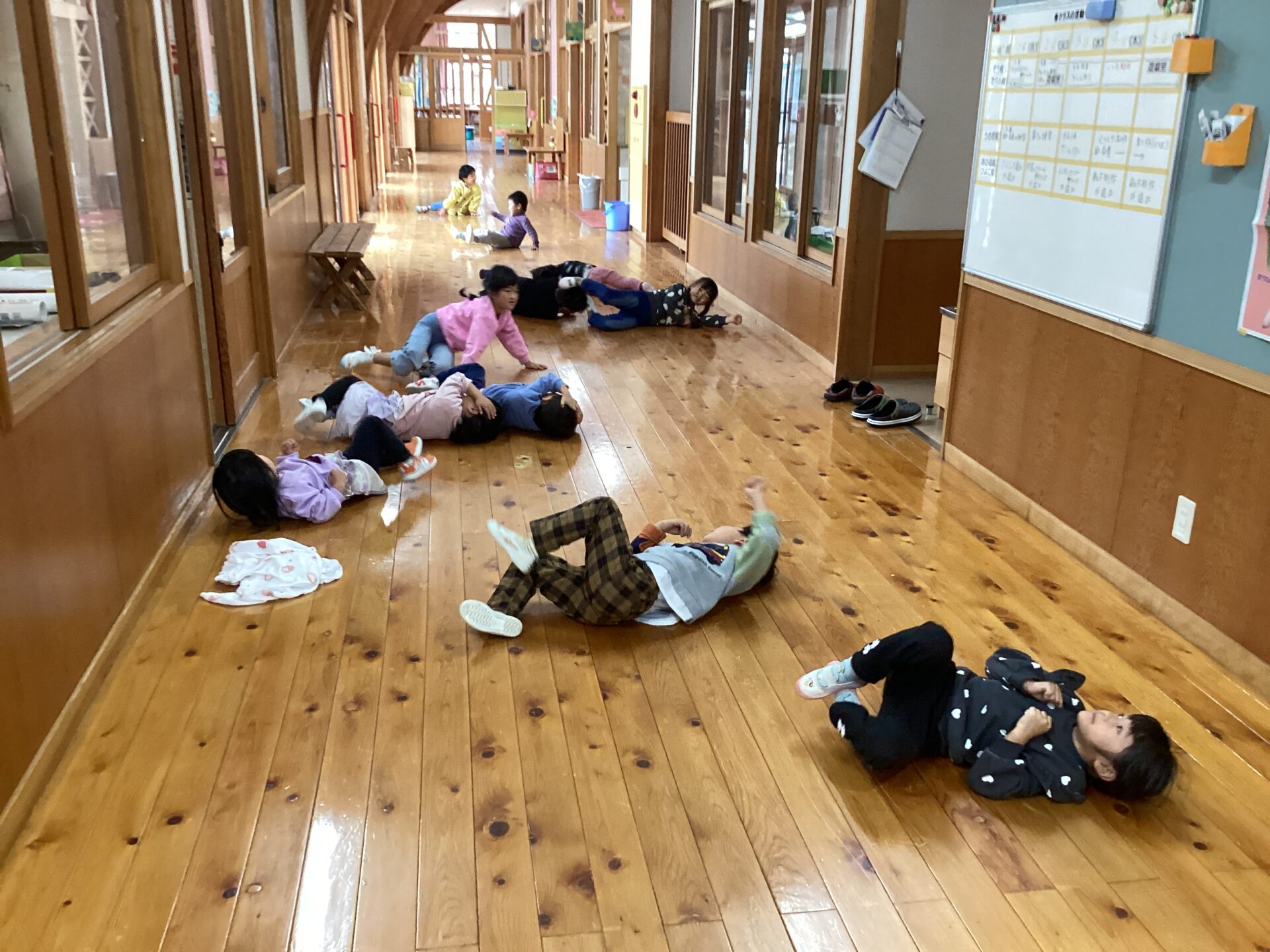固まるのを待つ間、子ども達は元気にうさぎやクマ等の動物になりきって廊下を行ったり来たりして体を動かして遊びながら待ちました。