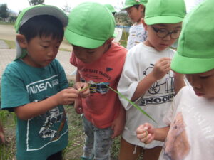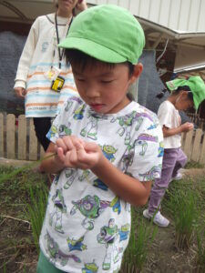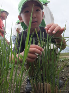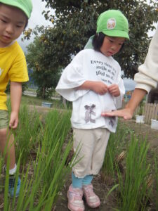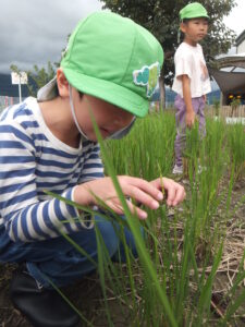 子どもたちは稲刈りをして田んぼに稲はないと思っていたので、不思議な光景だったようです。