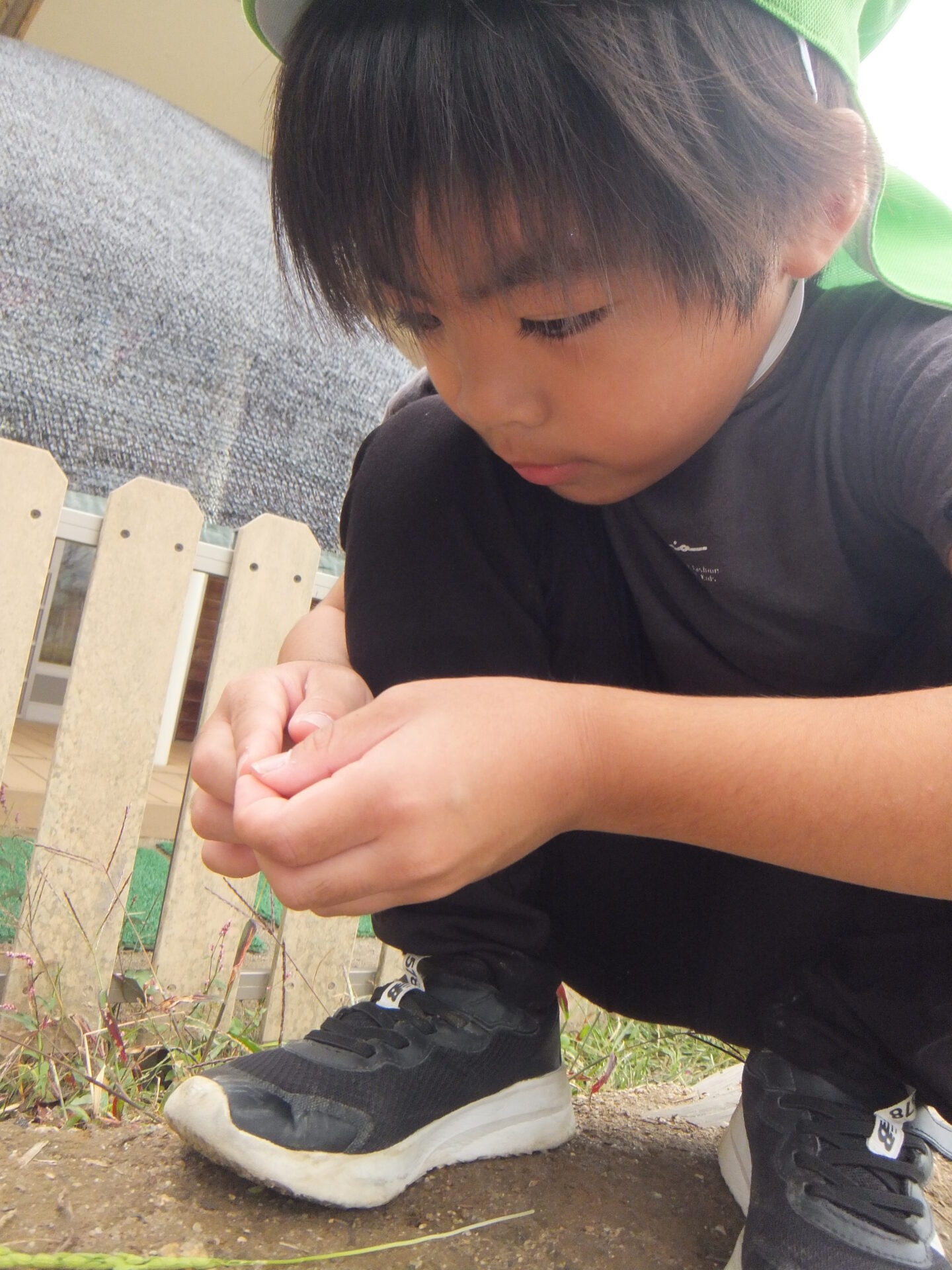 「この辺まで伸びてるよ」「僕はこの辺」と背比べ。