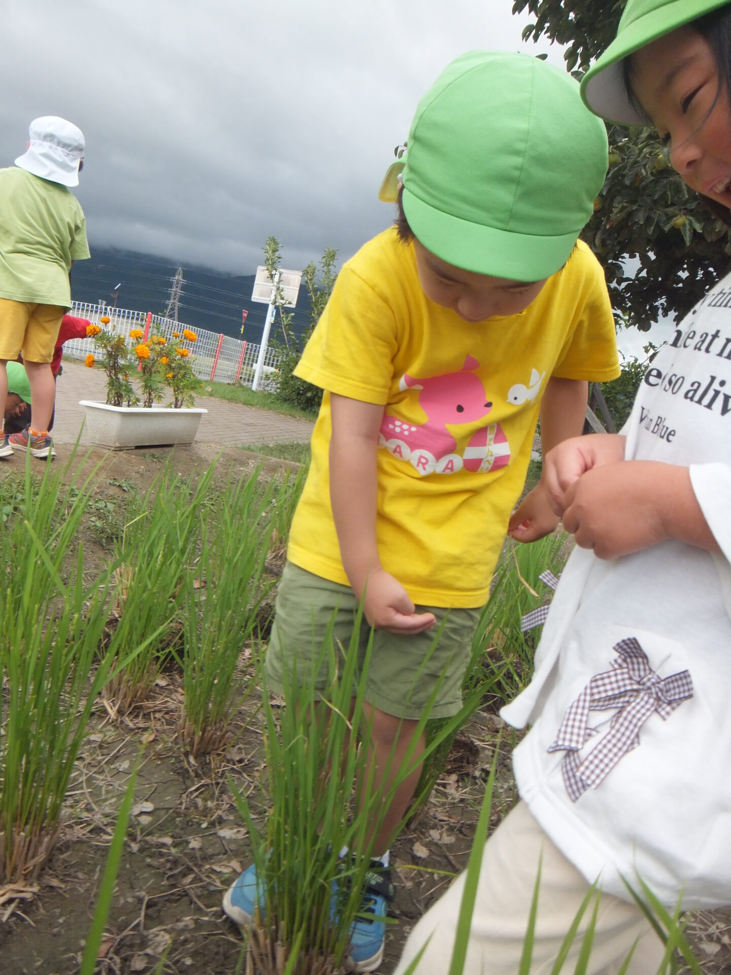 田んぼに集まる子どもたち