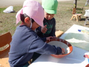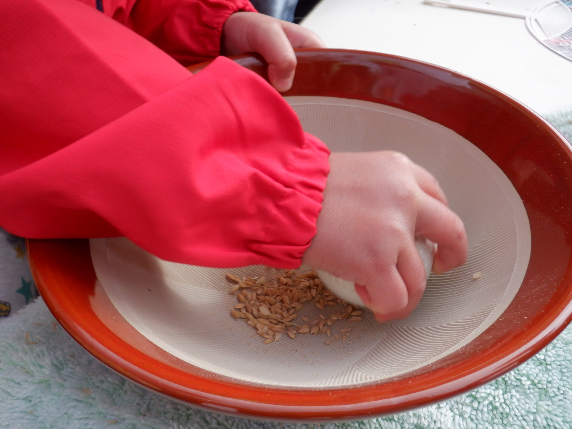 野球ボールとすり鉢を使ってもみすりができることを知り、早速挑戦!