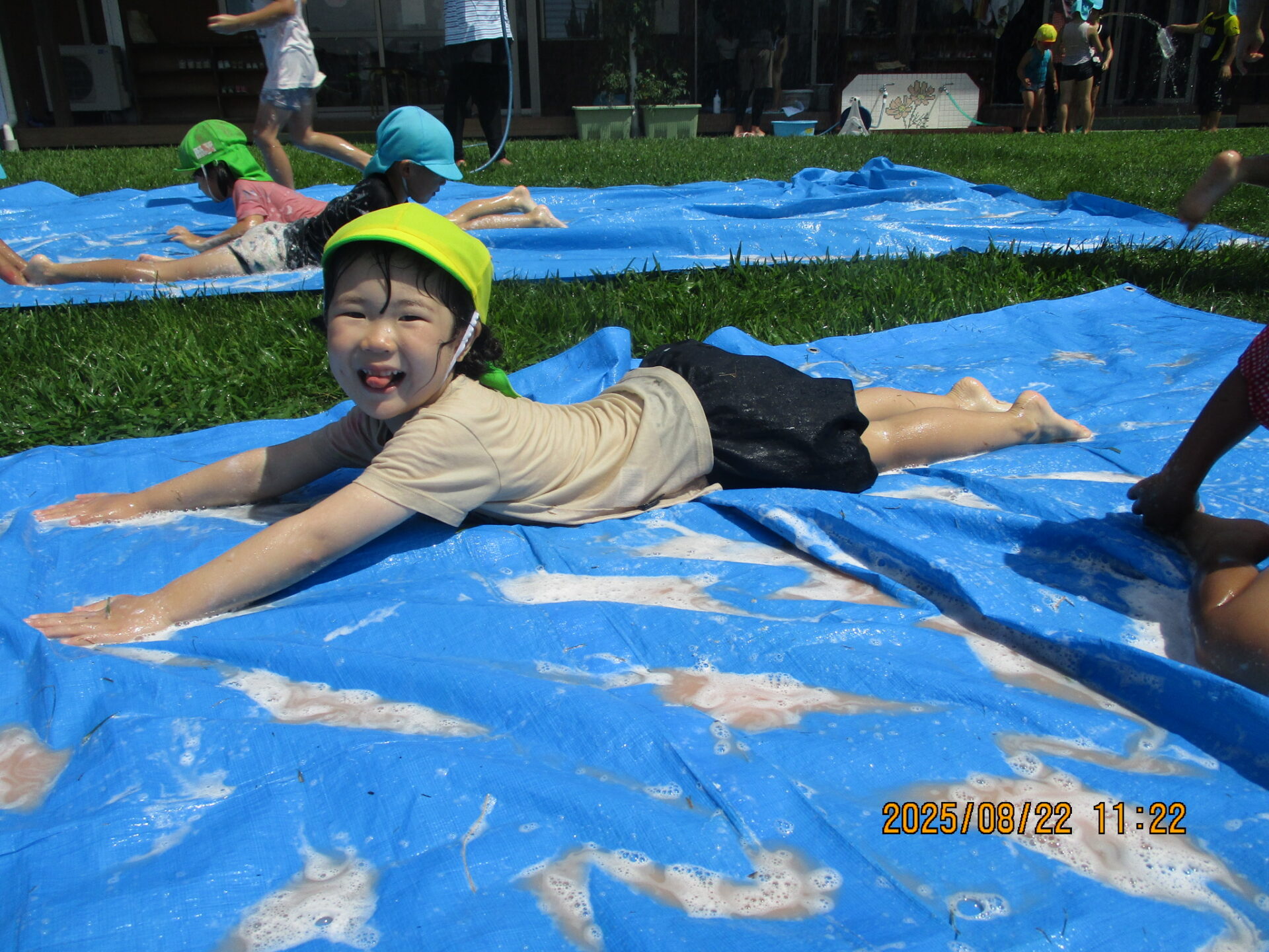 ・泡、絵の具、ボディペイント、スライダーで遊ぶ。