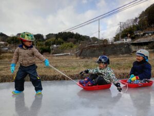 子供たちは氷の冷たさ・硬さ・氷と一緒に凍っている空気や落ち葉など色々な発見を教えてくれました。